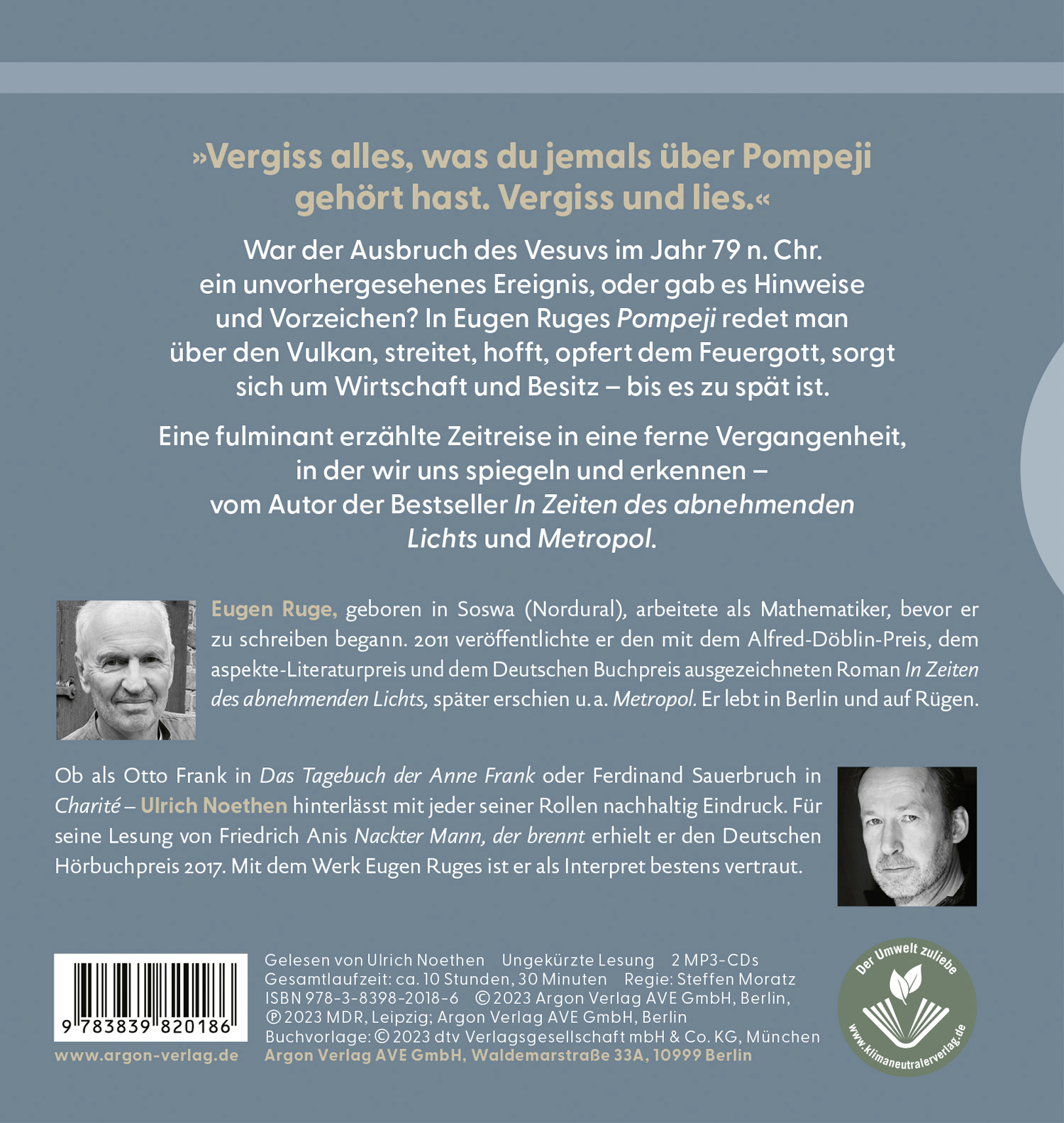 | Schlagworte | Altes Rom • Antike • Aufstieg und Fall • Ausbruch des Vesuv • Buchpreisträger • Das Literarische Quartett Mai 2023 • Deutscher Buchpreis • Erdbeben • Geschichtsroman • hr2-Hörbuchbestenliste Juli 2023 • In Zeiten des abnehmenden Lichts • Klimakatastrophe • Kolonialstadt • Metropol • Parabel • Pompeji • Romane Neuerscheinungen 2023 • Sittenbild • Spiegel Bestseller 2023 • Untergang • Untergangsszenario • Vesuv • Vogelschützer • Vulkan • Zeitreise in Vergangenheit und Gegenwart |