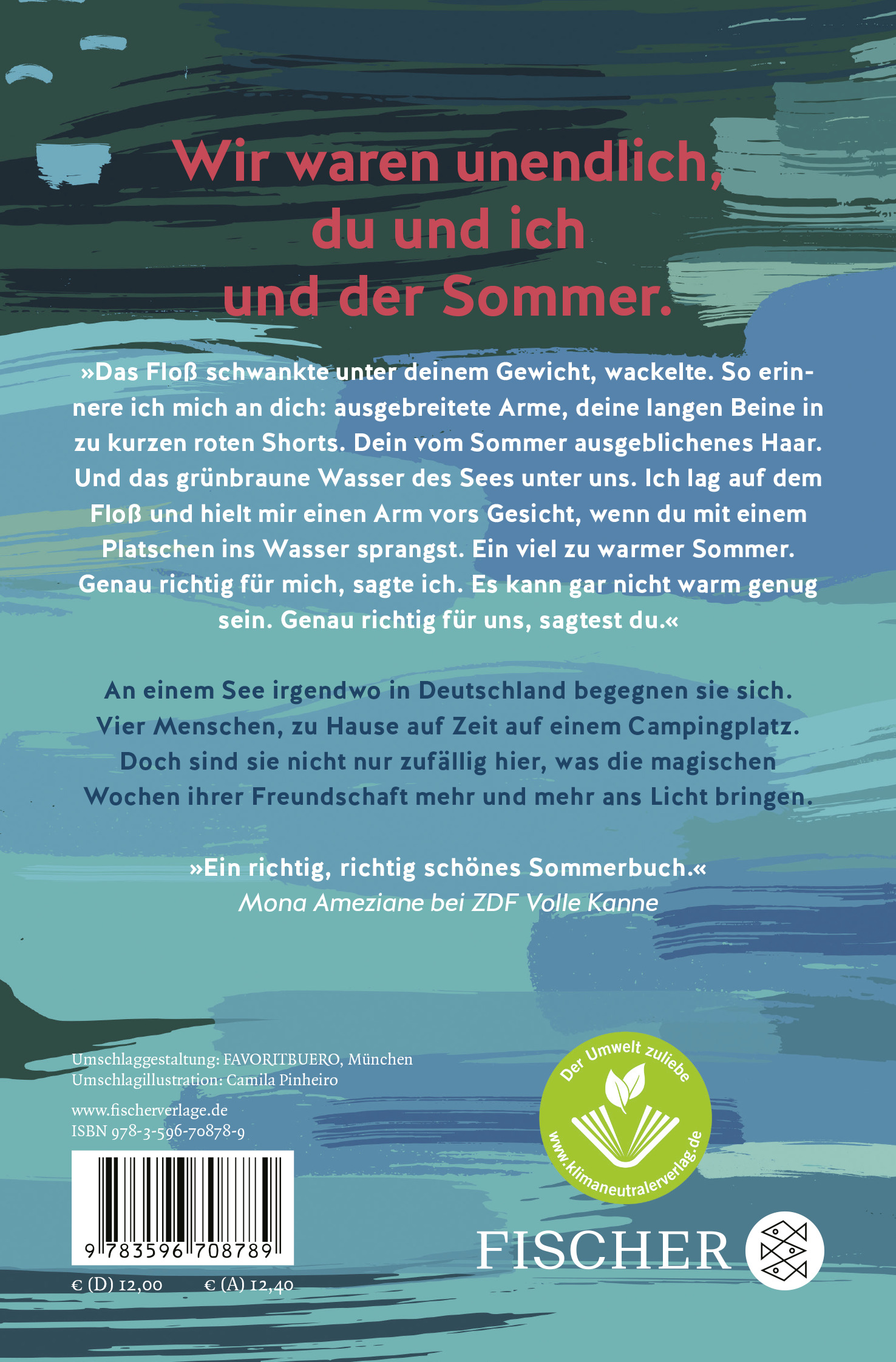 Wo soll man eigentlich hin, wenn man vor sich selbst davonläuft? In irgendeinen Zug einsteigen und bis zur Endstation fahren? So jedenfalls landet Lale auf dem heruntergekommenen Campingplatz an diesem See, der fast zu schön ist. Sie hilft dem alten, grantigen Besitzer Gustav beim Renovieren der maroden Bäder, füttert die flauschigen Kaninchen, trägt jeden Tag die gleiche, alte Latzhose und schweigt. Bis Christophe diese vermeintliche Ruhe durcheinanderbringt. Christophe mit den dunklen Augen, angereist vom anderen Ende der Welt, auf der Suche nach seinen Wurzeln. Christophe, der zu spüren scheint, was Lale fühlt. Gemeinsam erleben sie den einen Sommer, der bleibt: Flirrende Hitze, glitzerndes Wasser, gemeinsame Floßfahrten, ausgeblichenes Haar.