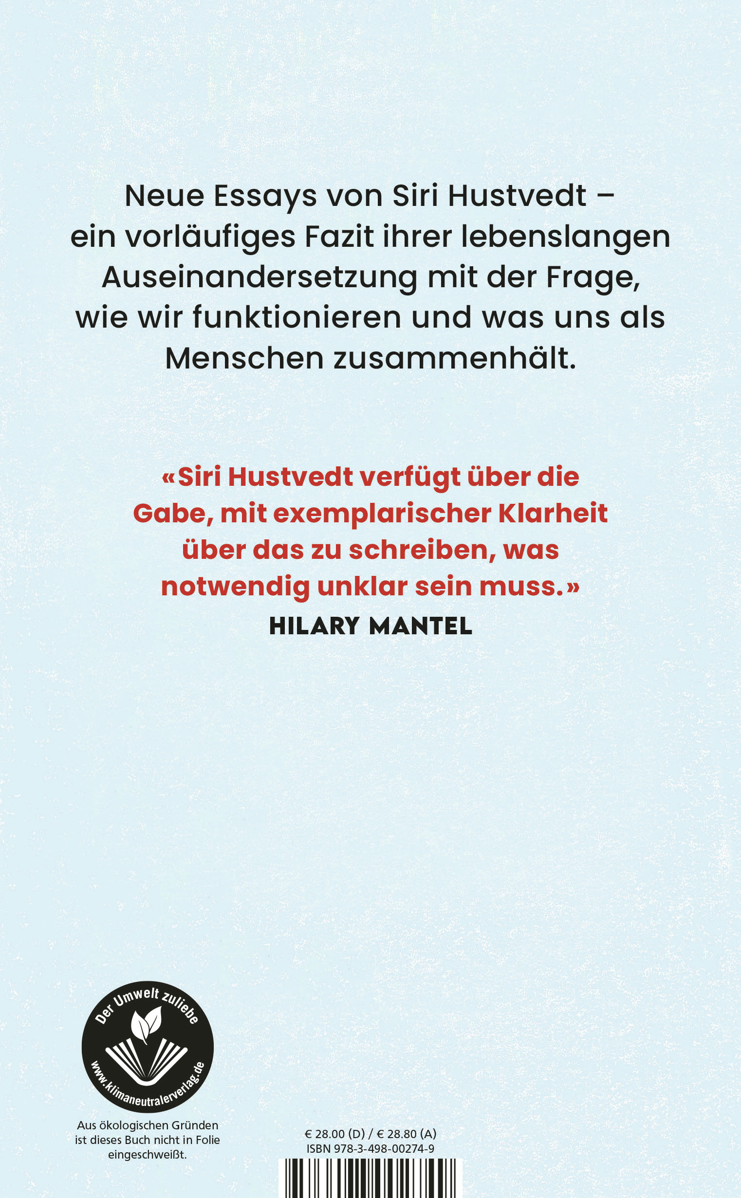 Siri Hustvedts Themen in dieser neuen, sehr persönlichen Sammlung von erstaunlichen Essays reichen von der Natur von Erinnerung und Zeit bis zu dem, was wir von unseren Eltern erben, und sie erweitern ihre bekannten Forschungsgebiete: Feminismus, Psychoanalyse, Neurowissenschaften, die Kunst, das Denken und das Schreiben. An lebendig erzählten Beispielen aus ihrer privaten Familiengeschichte und Lebenserfahrung zeigt Hustvedt, wie porös die Grenzen zwischen uns und den anderen, zwischen Kunst und Betrachter, zwischen dem Ich und der Welt sind. Und so privat diese abwechslungsreiche Reise durch die unterschiedlichsten Themenfelder erscheint, so universell ist sie letztlich - ein vorläufiges Fazit von Siri Hustvedts lebenslanger Auseinandersetzung mit der Frage, wie wir funktionieren und was uns als Menschen zusammenhält.
