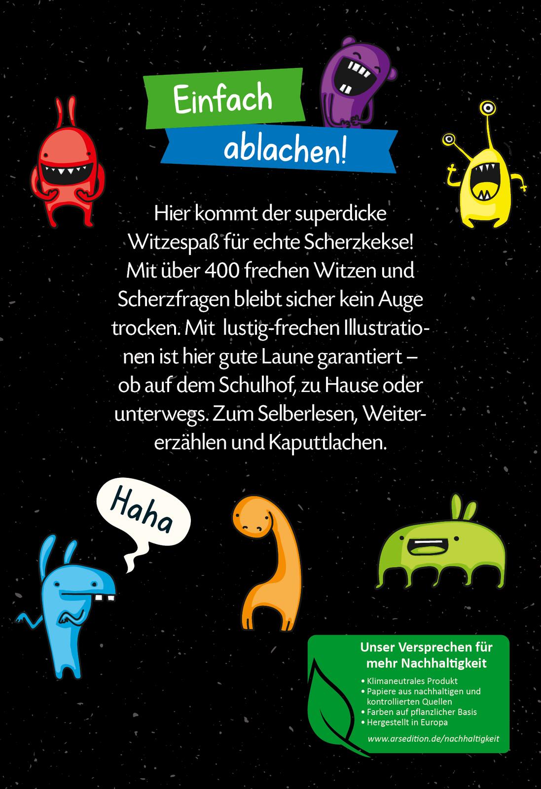 Hier kommt der superdicke Witzespaß für echte Scherzkekse! Mit den über 400 frechen Witzen und Scherzfragen bleibt sicher kein Auge trocken. Mit lustig-frechen Illustrationen, ist hier gute Laune garantiert - ob auf dem Schulhof, zu Hause oder unterwegs. Zum Selberlesen, Weitererzählen und Kaputtlachen.