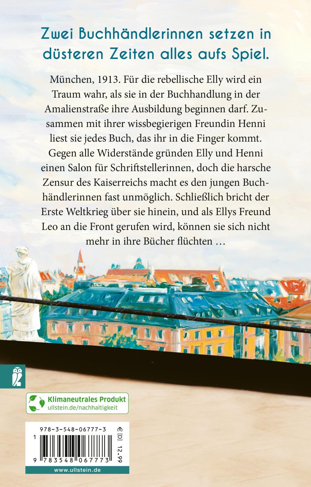 München, 1913. Für die rebellische Elly wird ein Traum wahr, als sie in der Buchhandlung in der Amalienstraße ihre Ausbildung beginnen darf. Zusammen mit ihrer wissbegierigen Freundin Henni liest sie jedes Buch, das ihr in die Finger kommt. Gegen alle Widerstände gründen Elly und Henni einen Salon für Schriftstellerinne. Die harsche Zensur des Kaiserreichs lässt nichts unversucht, um den modernen Frauen Steine in den Weg zu legen. Zu allem Überdruss bricht der erste Weltkrieg über die jungen Buchhändlerinnen hinein. Als Ellys Freund Leo an die Front gerufen wird, können sie sich nicht mehr in ihre Bücher flüchten ...