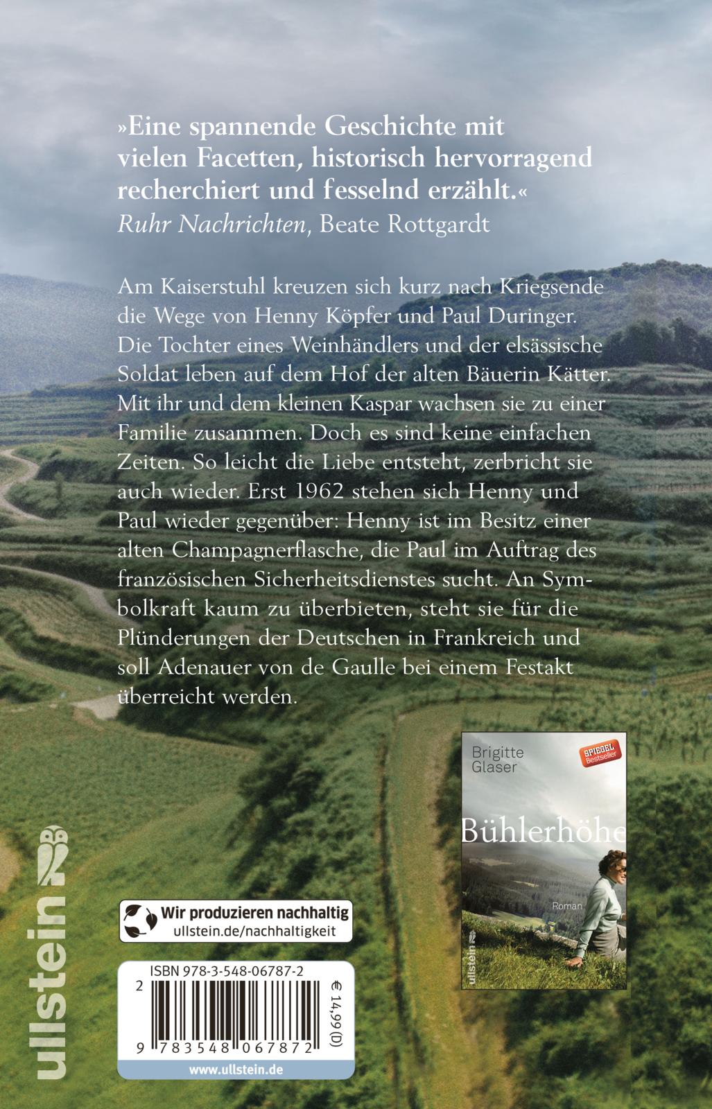 Am Kaiserstuhl kreuzen sich kurz nach Kriegsende die Wege von Henny Köpfer und Paul Duringer. Die Tochter eines Weinhändlers und der elsässische Soldat leben auf dem Hof der alten Bäuerin Kätter. Mit ihr und dem kleinen Kaspar wachsen sie zu einer Familie zusammen. Doch es sind keine einfachen Zeiten. So leicht die Liebe entsteht, zerbricht sie auch wieder. Erst 1962 stehen sich Henny und Paul wieder gegenüber: Henny ist im Besitz einer alten Champagnerflasche, die Paul im Auftrag des französischen Sicherheitsdienstes sucht. An Symbolkraft kaum zu überbieten, steht sie für die Plünderungen der Deutschen in Frankreich und soll Adenauer von de Gaulle bei einem Festakt überreicht werden.