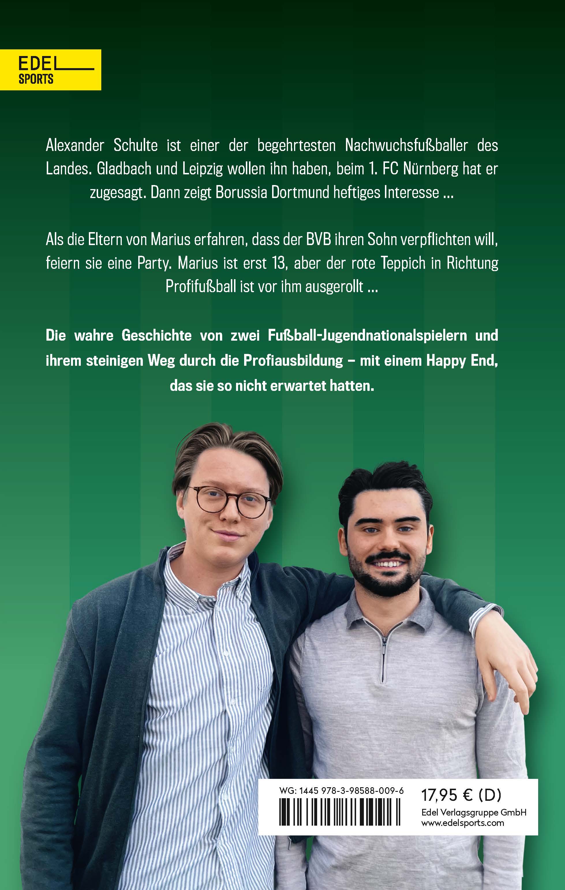 Marius von Cysewski und Alexander Schulte, beide geboren zur Jahrtausendwende, sind schon als kleine Kinder begnadete Fußball-Talente. Als sie 14 Jahre alt sind, wechseln sie unabhängig voneinander zu Borussia Dortmund, um sich ihren Traum vom Profifußball zu verwirklichen. Sie schaffen es in die Jugend-Nationalmannschaft und leben das Leben der Stars von morgen: Ausrüsterverträge, ein Leben zwischen Trainingsplatz und Flughafen, gefeierte Auftritte in schwarz und gelb. Ihre komplette Jugendzeit bleiben Alex und Marius beim BVB, den Blick immer nach oben gerichtet, zu den Profis. Doch der Weg dorthin ist steinig und schwer: Trainer, die mehr an der Tabelle als an der Weiterentwicklung ihrer Schützlinge interessiert sind, Verletzungen, mangelnde psychologische Betreuung, Einsamkeit und knallharter Konkurrenzkampf im Fußballinternat. Am Ende entscheiden sich die beiden trotz ihres Ausnahmetalents gegen ein Leben als Berufssportler und für eine klassische Berufsausbildung - aus Konkurrenten sind Freunde geworden. Sie bereuen nichts, nehmen aber bei der Kritik an fragwürdigen Trainingsmethoden und Nachwuchs-Förderkonzepten kein Blatt vor den Mund.