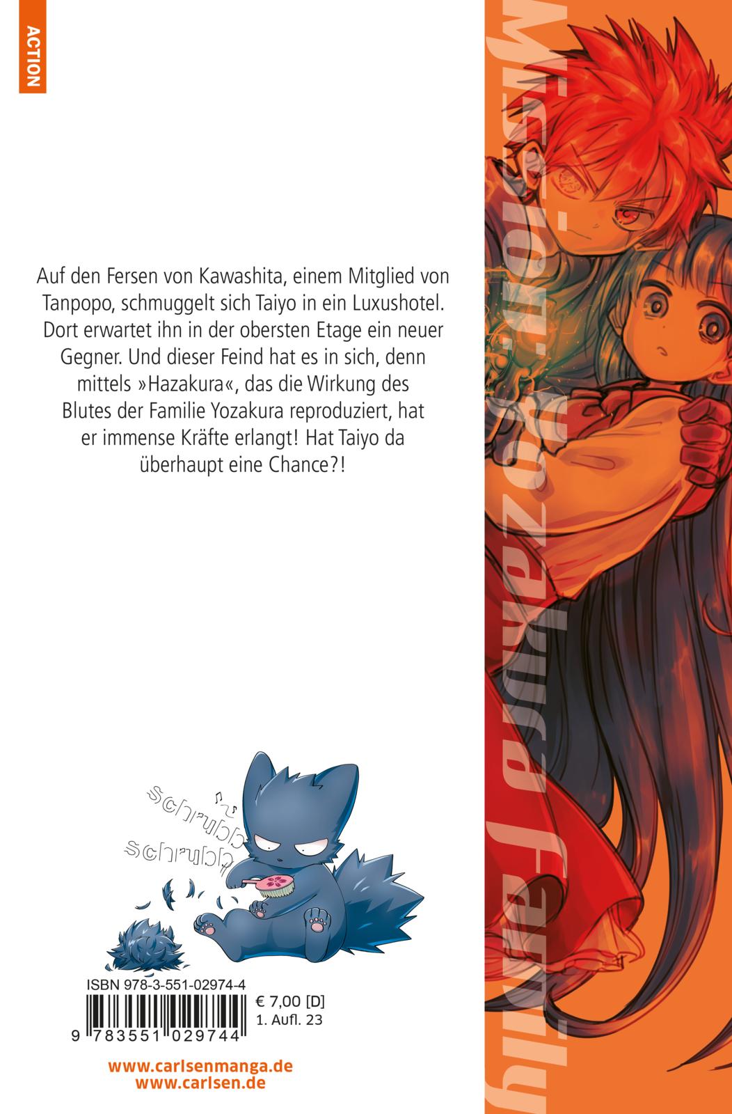 Auf den Fersen von Kawashita, einem Mitglied von Tanpopo, schmuggelt sich Taiyo in ein Luxushotel. Dort erwartet ihn in der obersten Etage ein neuer Gegner. Und dieser Feind hat es in sich, denn mittels »Hazakura«, das die Wirkung des Blutes der Familie Yozakura reproduziert, hat er immense Kräfte erlangt! Hat Taiyo da überhaupt eine Chance?!