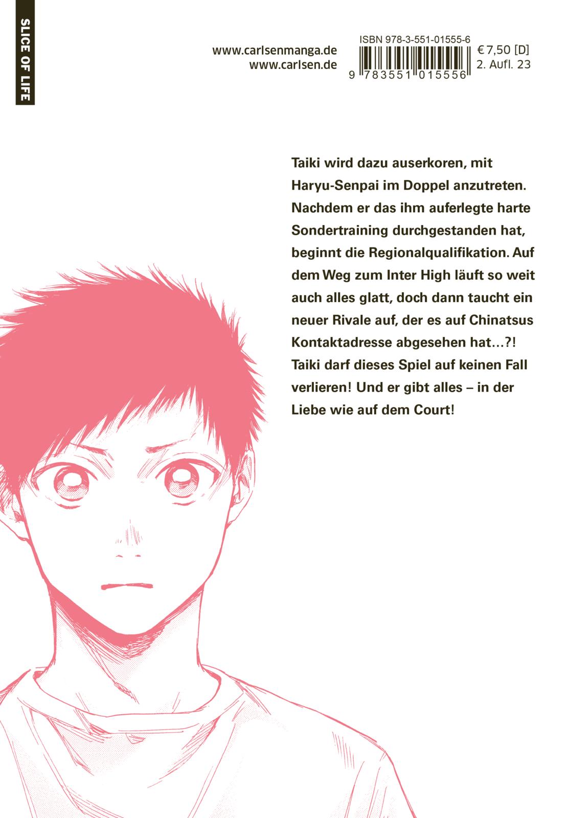 Taiki wird dazu auserkoren, mit Haryu-Senpai im Doppel anzutreten. Nachdem er das ihm auferlegte harte Sondertraining durchgestanden hat, beginnt die Regionalqualifikation. Auf dem Weg zum Inter High läuft so weit auch alles glatt, doch dann taucht ein neuer Rivale auf, der es auf Chinatsus Kontaktadresse abgesehen hat...?! Taiki darf dieses Spiel auf keinen Fall verlieren! Und er gibt alles - in der Liebe wie auf dem Court!