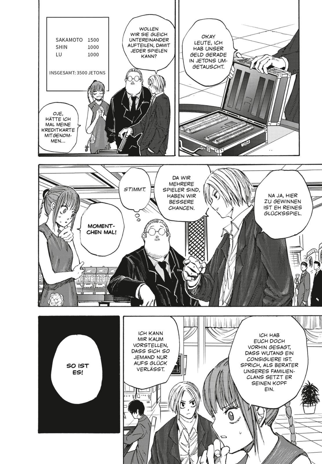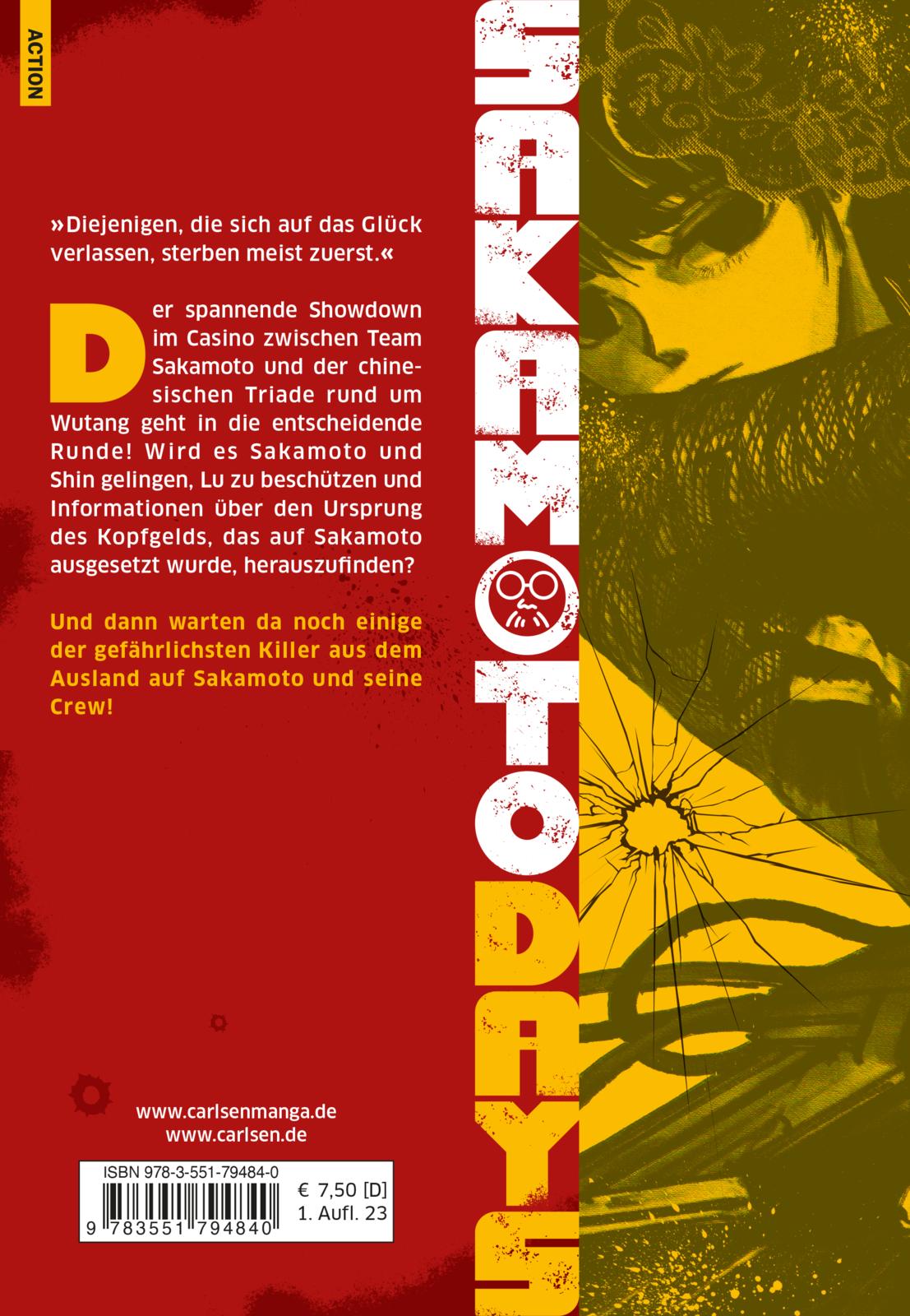 »Diejenigen, die sich auf das Glück verlassen, sterben meist zuerst.« Der spannende Showdown im Casino zwischen Sakamoto und der chinesischen Triade rund um Wutang geht in die entscheidende Runde! Wird es Sakamoto und Shin gelingen, Lu zu beschützen und Informationen über den Ursprung des Kopfgelds, das auf Sakamoto ausgesetzt wurde, herauszufinden? Und dann warten da noch einige der gefährlichsten Killer aus dem Ausland auf Sakamoto und seine Crew!