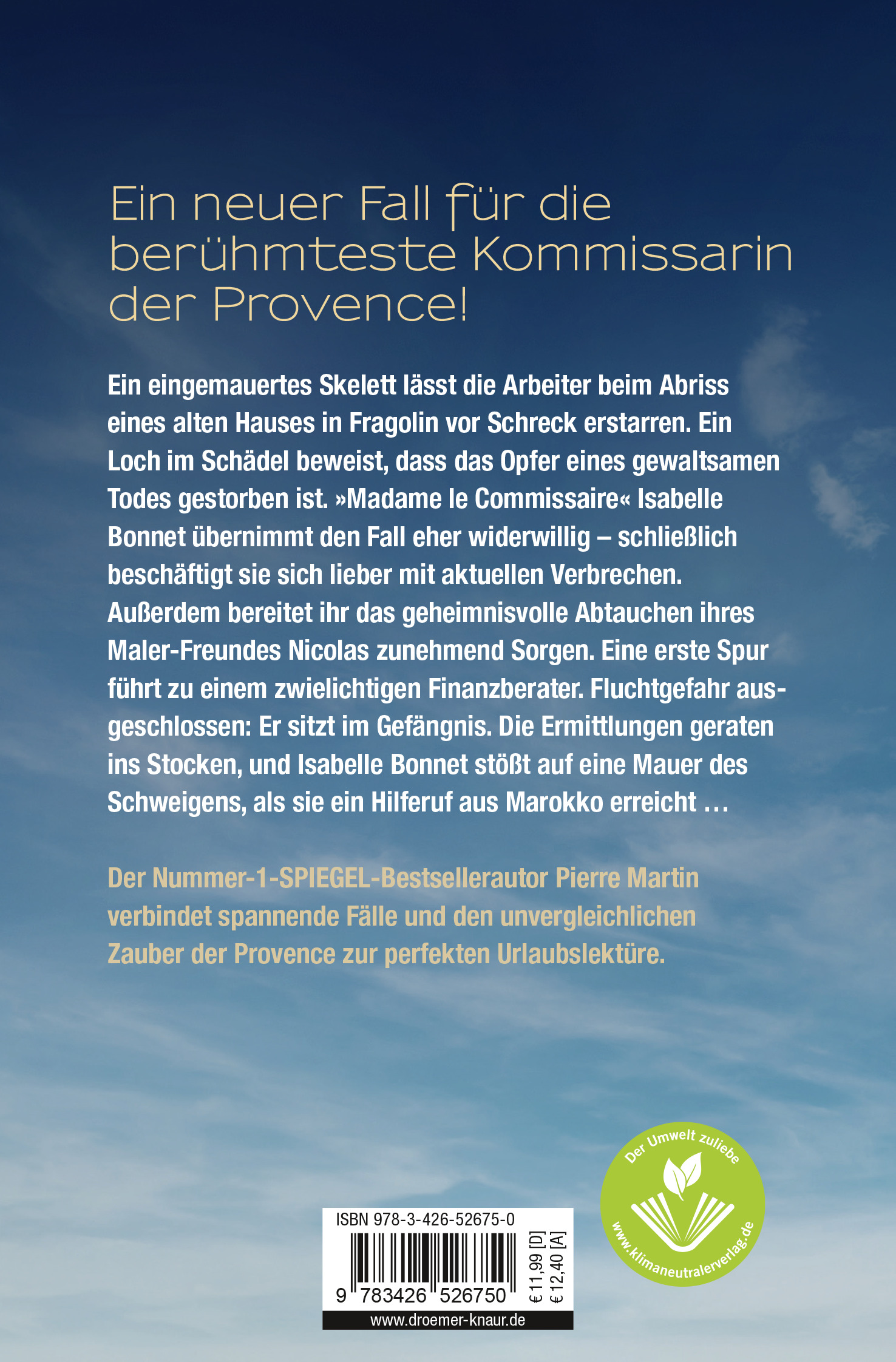 Mit seinen atmosphärischen Wohlfühlkrimis aus der Provence landet Pierre Martin einen Bestseller nach dem anderen: Die Krimi-Reihe »Ein Fall für Isabelle Bonnet« verbindet spannende Fälle, liebevoll gezeichnete Figuren und den unvergleichlichen Zauber der Provence zur perfekten Urlaubslektüre.