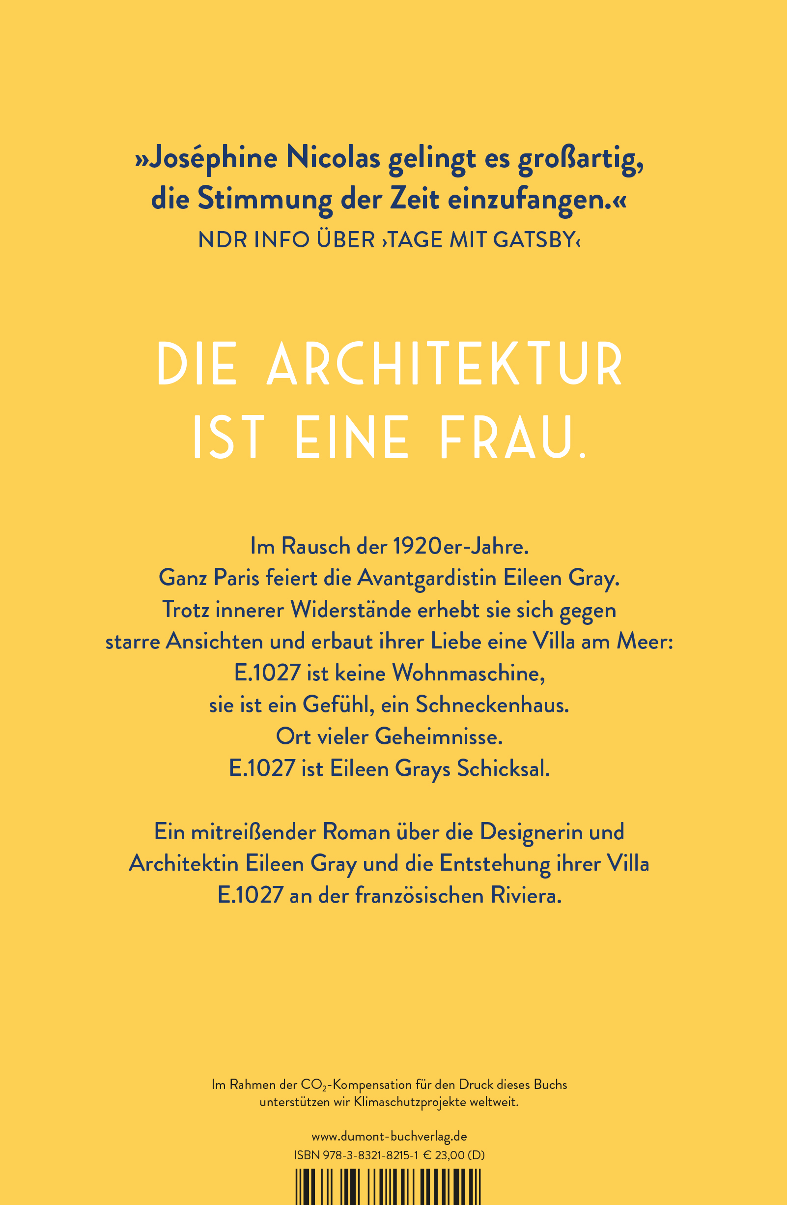 »Paris und seine Salons, der Kampf um künstlerische Anerkennung - all das vermengt Joséphine Nicolas zum faszinierenden Porträt einer Künstlerin.« Peter Twiehaus, ZDF-MORGENMAGAZIN »Christiane Adlung [hat] einen intensiven Roman geschrieben. Das liegt nicht nur an dem Leben und Denken [Eileen] Grays. [...] Es liegt auch an der sensiblen und wunderschönen Sprache der Autorin.« Maike Jacobs, NEUE PRESSE »Joséphine Nicolas setzt Eileen Grey mit ihrem fesselnden und poetischen Roman ein Denkmal.« Christiane von Korff, BÜCHERMAGAZIN »Wie ein Ritt durch die Architekturgeschichte der Moderne.« Welf Grombacher, SÜDKURIER »Beeindrucked!« Sigrid Lünnemann, DAS STADTMAGAZIN FÜR CLOPPENBURG & UMZU