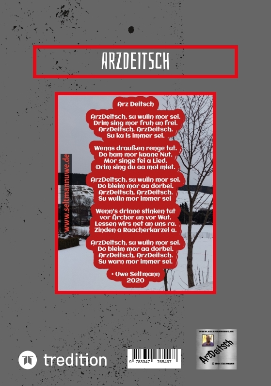 ArzDeitsch - das sind Gedichte und Geschichten in westerzgebirgischer Mundart, geschrieben von Uwe Seltmann.Wie andere Dialekte, ist auch die erzgebirgische Mundart, von vielen Eigenheiten geprägt.