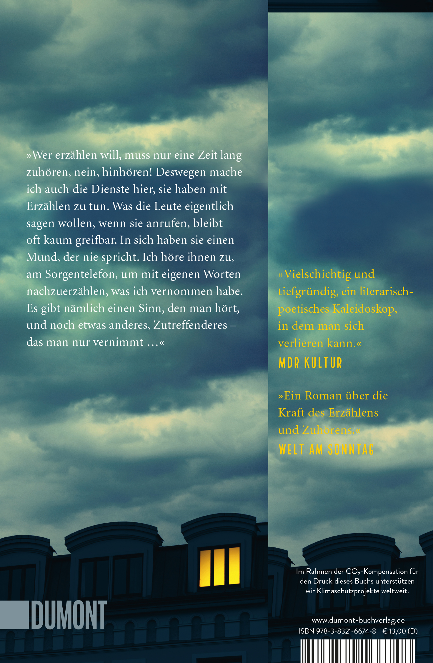 »Vielschichtig und tiefgründig, ein literarisch-poetisches Kaleidoskop, in dem man sich verlieren kann.« Andrea Gerk, MDR KULTUR »Kurzum: Judith Kuckart hat einen metaphysischen Roman geschrieben [...] Die erfahrene Schriftstellerin, die auch als Choreografin und Regisseurin arbeitet, hat in ihrem 'Café der Unsichtbaren' das Erhabene feinsinnig mit dem Alltäglichen verknüpft.« Hubert Winkels, DIE ZEIT »Im Nachspann deutet sie an, dass sie das alles auch anders hätte erzählen können. Man kann sich nur freuen, dass sie es so gemacht hat, wie es vorliegt. Es macht nämlich großen Spaß.« Rudolf von Bitter, SÜDDEUTSCHE ZEITUNG »Judith Kuckarts 'Café der Unsichtbaren' ist ein Roman über die Kraft des Erzählens und Zuhörens.« WELT AM SONNTAG »Hochaktuell!« Petra Schulte, EMOTION »Judith Kuckert knüpft mit großer Kunstfertigkeit ein Netz, das alle verbindet. Ein vielschichtiges und überaus kurzweiliges Werk, in dem jeder Satz sitzt.« Torben Rosenbohm, NORDWEST-ZEITUNG »[Judith Kuckarts] Sprache ist aufmerksam, gespannt, farbig.« Manfred Papst, NZZ BÜCHER AM SONNTAG »Schön ist, wie Judith Kuckart die Atmosphäre der Nächte in Sprache übersetzt. [...] Nicht nur eine schöne Lektüre für schlaflose Nächte, sondern auch für sonnige Tage.« Insa Wilke, WDR3 GUTENBERGS WELT »Eine poetische Reise durch die Berliner Nacht« Tilla Fuchs, SR2 KULTURRADIO »Eine zart-melancholische Parabel über die Vergänglichkeit.« Joachim Scholl, LESART DEUTSCHLANDFUNK KULTUR »Wunderbar spannende Einblicke in ganz unterschiedliche Biografien« Anne-Dore Krohn, RBB KULTUR »Sie erinnern die, die lesen, daran, wie eng Erzählen und Leben zusammenhängen« Carsten Tesch, MDR KULTUR »Es sind [...] wunderbar spannende Einblicke in ganz ganz viele unterschiedliche Biografien. In diesem Roman steckt sehr sehr viel drin.« Anne-Dore Krohn, RBB KULTUR »Judith Kuckart schreibt im 'Café der Unsichtbaren' über Menschen, die für andere da sein wollen.« Cornelia Geissler, BERLINER ZEITUNG »Judith Kuckart [zeigt sich] als Meisterin der literarischen Körpersprache.« Hansruedi Kugler, LUTZERNER ZEITUNG »Wieder findet die Autorin schöne Bilder und Formulierungen für umfassenden Lebensfatalismus und schreibt diese präzisen Sätze, die man sich anstreichen möchte.« Ulrich Steinmetzger, FREIE PRESSE »Judith Kuckart kann so schön von einfachen Wahrheiten schreiben.« Ingrid Mylo, BADISCHE ZEITUNG »['Café der Unsichtbaren'] behandelt auf einfühlsame Weise die kulturelle Geste des Zuhören(können)s.« Hannes Krauss, WESTFÄLISCHE RUNDSCHAU »Es geht in dem Buch um das Erzählen, in seinen ganz unterschiedliches Erscheinungsformen.« Katrin Krämer, BREMEN ZWEI »Ein Einblick in eine unbekannte Welt, spannend!« Anna Burghardt, DIE PRESSE AM SONNTAG »Es geht um den Glauben an sich, um die Lasten, die jeder Einzelne zu tragen hat - und um den Keim der Hoffnung.« Britta Heidemann, WESTDEUTSCHE ALLGEMEINE ZEITUNG »Dieses Prinzip der Menschlichkeit, dieses Sich-Helfen, macht Freude und gibt Trost.« Anne-Dore Krohn, RBB KULTUR »Eine spannende Versuchsanordnung« Felix Müller, BERLINER MORGENPOST »Der Roman löst einen langen Nachhall aus.« Johannes Schröer, DOMRADIO »Viele offene, bewegende Fragen - unaufgeregt und beinahe lakonisch erzählt.« Peter Mohr, LOKALKOMPASS.DE