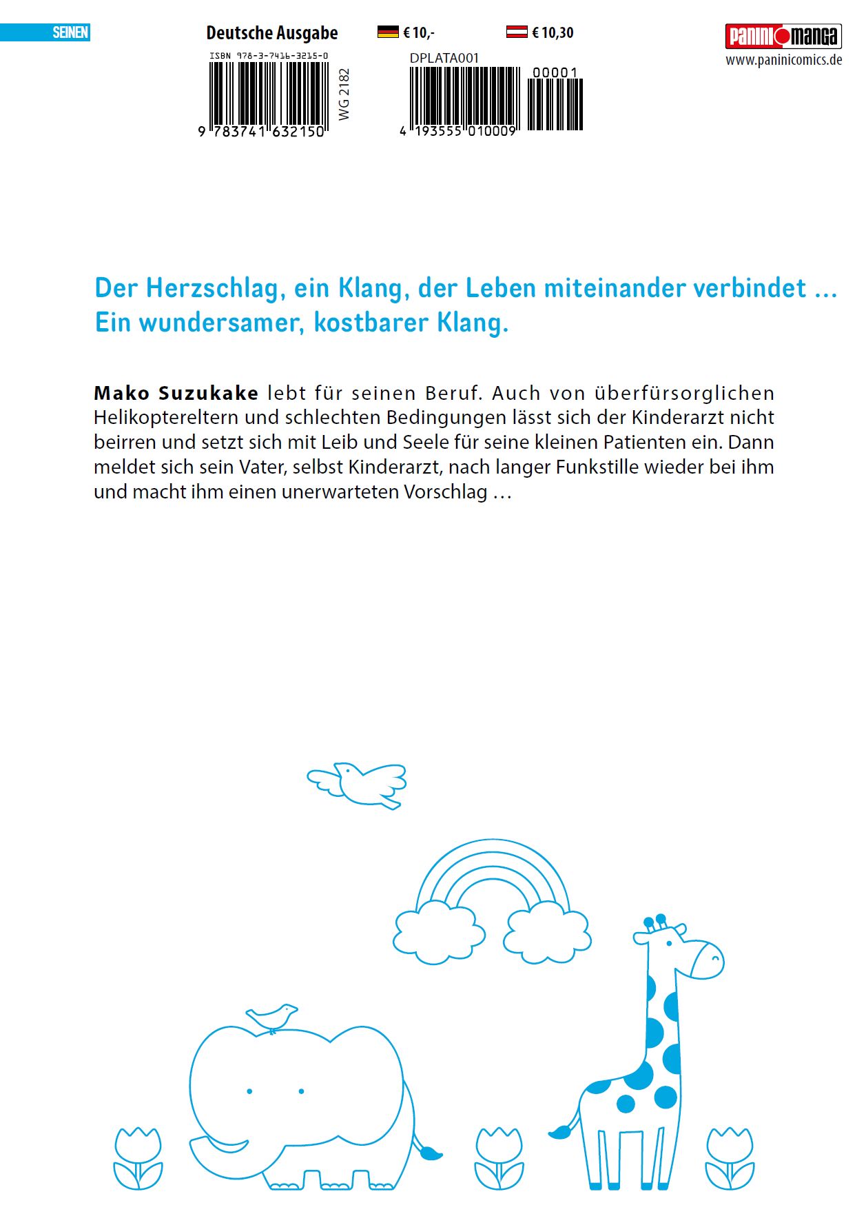 Erlebe das Leben eines Kinderarztes für Groß und Klein! Begleite Kinderarzt Mako Suzukake in seine Welt der Kinderheilkunde, in der die Kleinen erst dann auch gesund gepflegt sind, wenn er ihnen ein Lächeln auf ihr Gesicht zauber kann! Und manchmal bedeutet ein Kinderarzt zu sein auch nicht nur, dass man sich um die Sorgen der Kleinen, aber auch der Großen kümmert ... Das erwartet dich in Band 1:Der Herzschlag, ein Klang, der Leben miteinander verbindet ...Ein wundersamer, kostbarer Klang. Mako Suzukake lebt für seinen Beruf. Auch von über fürsorglichen Helikoptereltern und schlechten Bedingungen lässt sich der Kinderarzt nicht beirren und setzt sich mit Leib und Seele für seine kleinen Patienten ein. Dann meldet sich sein Vater, selbst Kinderarzt, nach langer Funkstille wieder bei ihm und macht ihm einen unerwarteten Vorschlag ...Der Auftakt zum Community-Liebling! Für Fans von Arztserien, Die Tagebücher der Apothekerin und warmherzigen Geschichten über Kinder!