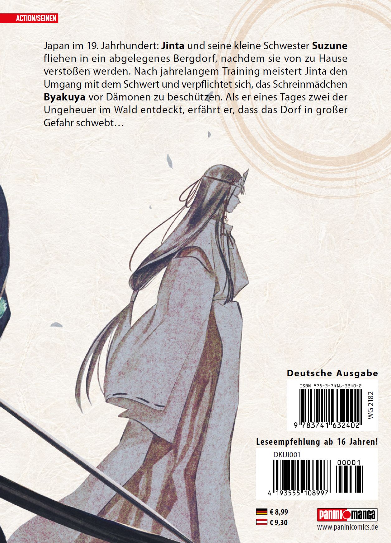 KIJIN GENTOSHO ist ein spannender und actiongeladener Samurai-Manga mit ungeahnten Twists!Japan im 19. Jahrhundert: Jinta und seine kleine Schwester Suzune fliehen in ein abgelegenes Bergdorf, nachdem sie von zu Hause verstoßen werden. Nach jahrelangem Training meistert Jinta den Umgang mit dem Schwert und verpflichtet sich, das Schreinmädchen Byakuya vor Dämonen zu beschützen. Als er eines Tages zwei der Ungeheuer im Wald entdeckt, erfährt er, dass das Dorf in großer Gefahr schwebt ... Für Fans von Action-, Abenteuer-, Mystery- und Samurai-Manga!