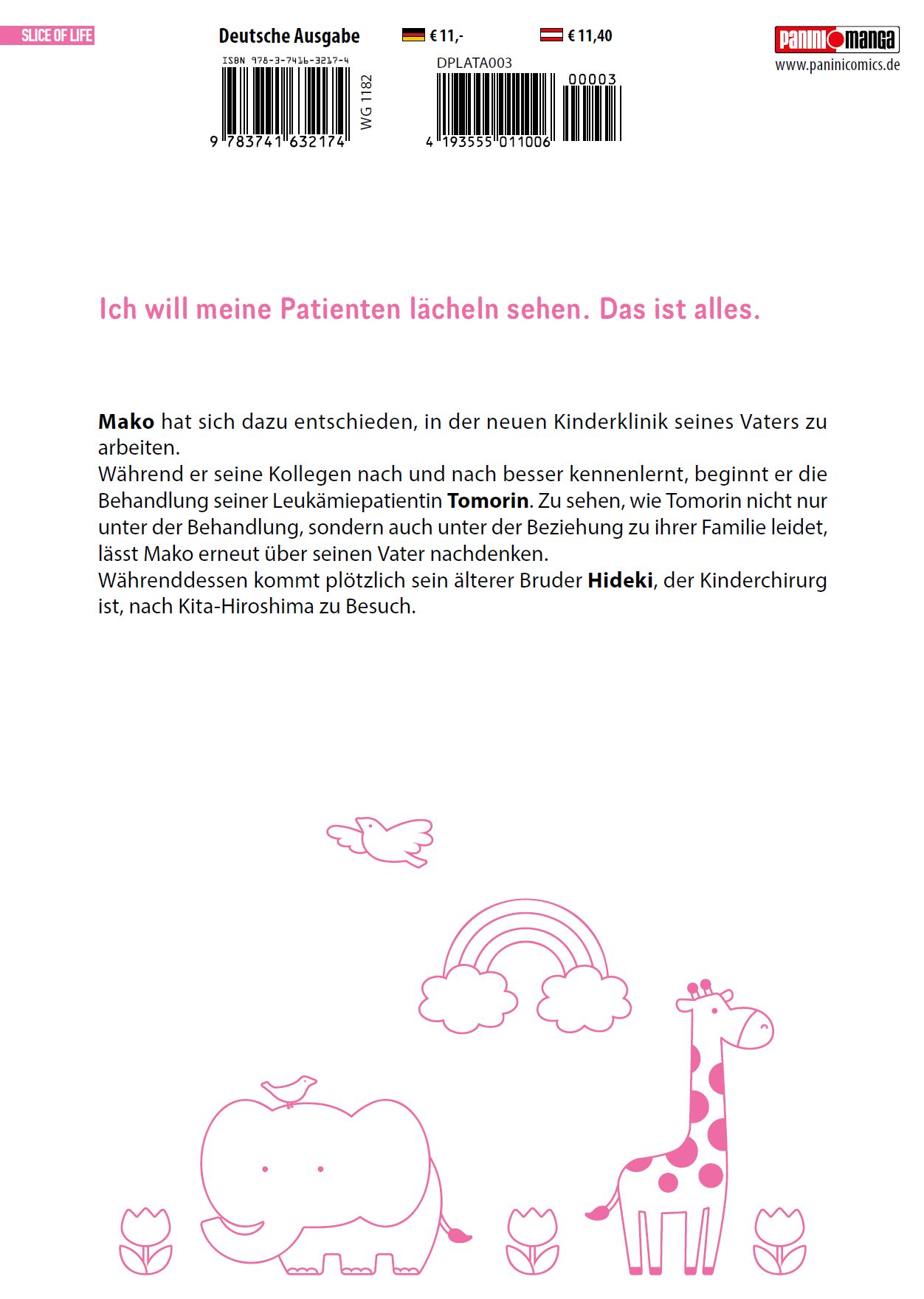 | Schlagworte | Arzt • Arzt Serie • Arzt-Serie • Die Tagebücher der Apothekerin • Dr.House • f23 • Full Metal Alchemist • Grey's Anatomy • Hideki • Kinder • Kinderarzt Manga • Leukämie • Mako • Mako Suzukake • Manga • Mangas • Medizin • Nabe • Pädiatrie • Panini • Paninimanga • Platanus no mi • Romance • Romanze • Slice of Life • The GOOD Doctor • Tomomi • Tomorin |