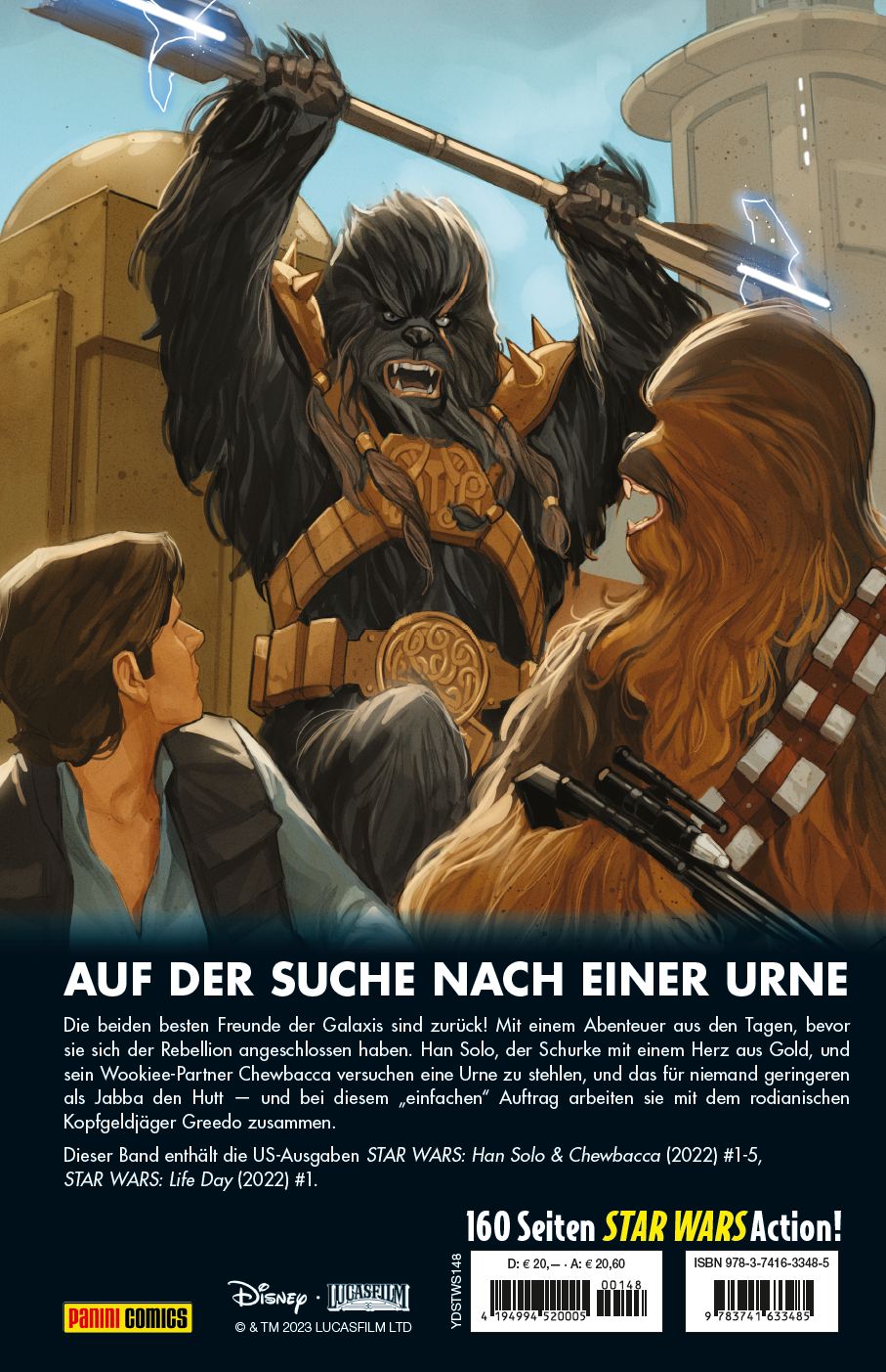 AUF DER SUCHE NACH EINER URNEDie beiden besten Freunde der Galaxis sind zurück! Mit einem Abenteuer aus den Tagen, bevor sie sich der Rebellion angeschlossen haben. Han Solo, der Schurke mit einem Herz aus Gold, und sein Wookiee-Partner Chewbacca versuchen eine Urne zu stehlen, und das für niemand geringeren als Jabba den Hutt - und bei diesem "einfachen" Auftrag arbeiten sie mit dem rodianischen Kopfgeldjäger Greedo zusammen.Dieser Band enthält die US-Ausgaben STAR WARS: Han Solo & Chewbacca (2022) #1-5, STAR WARS: Life Day (2022) #1.