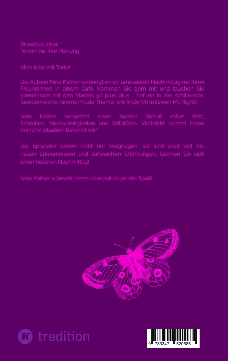 „Vergiss nie Deinen guten Appetit und eine (große) Portion Humor !!!“ Die Autorin Nina Kather, 50 plus plus plus … lebt in ihrer Heimatstadt Bielefeld. Sie schreibt unter einem Pseudonym. Durch eine persönliche, alles verändernde Krise hat sie das literarische Schreiben für sich entdeckt. Mit jedem weiteren Schreiben wuchs die Leidenschaft für das Verfassen von heiteren Texten. Es bietet einen willkommenen kreativen Ausgleich zu ihrer Beschäftigung mit Massen an Formularen und Anträgen im schlichten Verwaltungswesen, von denen sie tagtäglich förmlich überrollt wird … Das erste Buch der Autorin handelt von witzigen und skurrilen Situationen, welche sie selbst in ihrem persönlichen Umfeld erlebt hat. Alle Geschichten sind in humorvollem Stil geschrieben und werden augenzwinkernd begleitet. Leuchtendes Vorbild ist der Großvater Nina Kathers, ehemals Mitglied in einem Humoristen-Club. Er, ein Mann mit staubtrockenem Humor, hat in seinen besten Jahren ganze Gesellschaften u. a. mit dem naturgetreuen Vortragen der damals beliebten Couplets (u. a. von Otto Reutter) begeistert. Im hohen Alter der Achtziger gab er im kleinen familiären Kreis ab und zu noch eine Kostprobe. Der Autorin standen vor Lachen so manches Mal Tränen in den Augen. Nina Kather, vermutlich erblich vorbelastet, liebt „Humorvolles“ und möchte das geschätzte Lesepublikum locker unterhalten und liebend gern zum Lachen animieren.