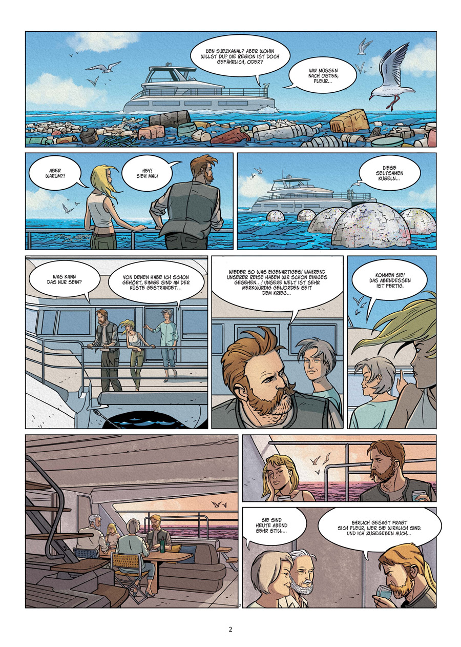 In ihrer apokalytpischen Welt beginnen Fleur und ihr Vater die Visionen zu hinterfragen, die sie dazu verleitet haben, an Bord eines Schiffes zu gehen, das den Suezkanal durchqueren soll. In seiner Dimension, die den 50er Jahren ähnelt, träumt Joe weiterhin von Fleur, ohne sich den Ursprung dieser Träume erklären zu können. Und obwohl seine Freunde langsam an seinem Verstand zweifeln, setzt Joe seine Untersuchungen der seltsamen Phänomene, die sich in seinem Umfeld häufen, fort.Die neue Science-Fiction-Serie von Leo und Rodolphe, dem Autorenduo der Bestseller »Centaurus« und »Europa«, lädt ihre Leser zu einer atemberaubenden Reise durch Raum und Zeit ein! Und die elegante ligne claire von Louis Alloing macht diese Reise zu einem echten Augenschmeichler.