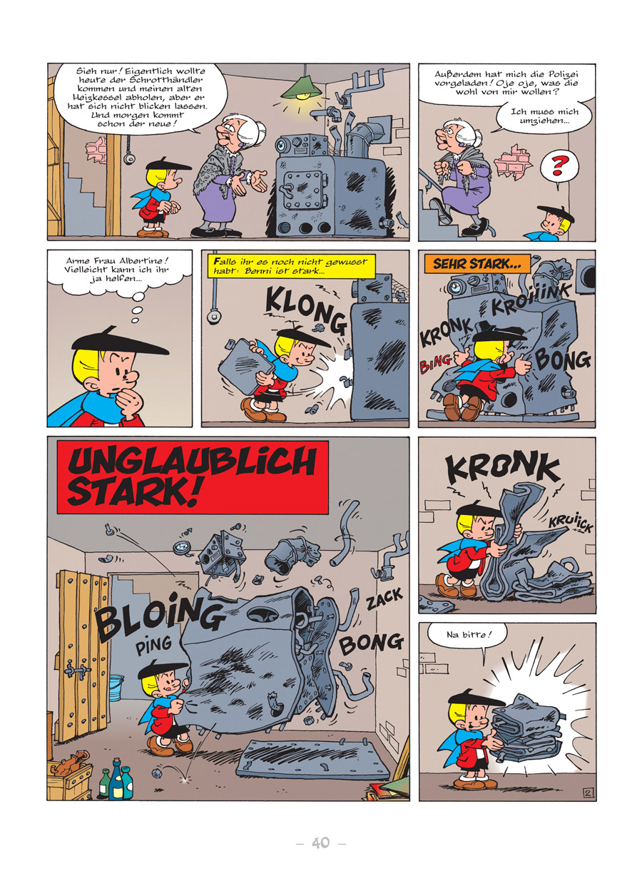 Benni ist ein kleiner, ganz normaler Junge - das heißt, er wäre es gern, ist er aber nicht, denn er ist unglaublich stark! Schwierigkeiten bereitet ihm nur, seine Kräfte im Alltag richtig zu dosieren. Zumindest solange er keinen Schnupfen hat, denn dann verlassen ihn seine Kräfte, und er ist wirklich nur ein braver, kleiner Junge, dem allerdings jede Art von schlechtem Benehmen oder gar kriminelle Machenschaften strikt zuwider sind. So gerät er stets aufs Neue in abenteuerliche Verwicklungen, bei denen er seine Superkräfte dann doch sinnvoll einsetzen kann, und wenn er schön darauf achtet, sich nicht zu erkälten, haben Schurken und Bösewichter gegen ihn kaum eine Chance.Die »Benni Bärenstark Gesamtausgabe« versammelt alle 14 Abenteuer des charmanten Klassikers von »Schlümpfe«-Erfinder Peyo in 5 umfangreichen Bänden, ergänzt um bisher in Deutschland unveröffentlichtes Bonusmaterial und informative Dossiers von Comic-Experte Patrick Gaumer.Dieser Band enthält folgende Episoden:- Bennis großer Auftritt- Auf Benni kommt es an!- Benni macht das Rennen- Susis Geheimnis