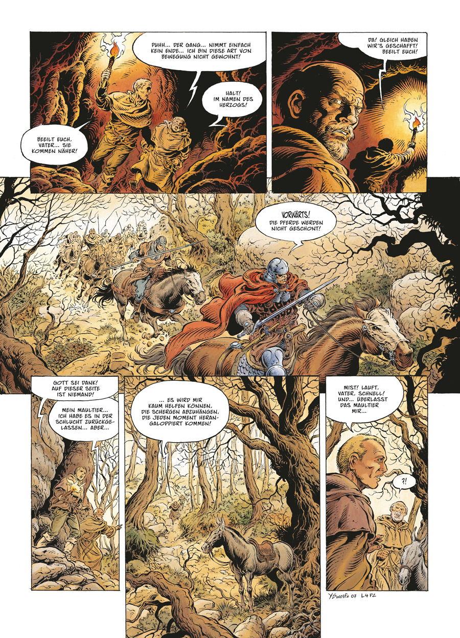 Von Bruder Aelred erfährt Tristan, dass seine Schwester noch lebt und sich im Konvent der Heiligen Mathilde aufhält. Von Erleichterung beflügelt bricht er überstürzt auf, um sie zu retten, denn auch Meister Shaggan hat Pläne mit ihr. Doch schnell muss Tristan einsehen, dass der direkte Weg ihn hier nicht zum Erfolg wird...Hört die Legende des Ruhelosen Ritters! Mit seiner ersten Reihe im Fantasy-Genre eroberte der seinerseits legendäre Comic-Künstler Yves Swolfs (»Durango«, »Der Prinz der Nacht«, »Lonesome«) aus dem Stand die Bestsellerlisten. Weniger High Fantasy à la Tolkien als vielmehr düstere Phantastik im Stile Sapkowskis, ist »Legende« ein zeitloses Werk über den Kampf zwischen Gut, Böse und der bestialischen Natur des Menschen, das von Swolfs erzählerisch wie zeichnerisch brillant umgesetzt wird.Splitter veröffentlicht die überarbeitete Neuauflage der Bände 1-6 parallel zur Erstveröffentlichung der Folgebände ab Band 7.