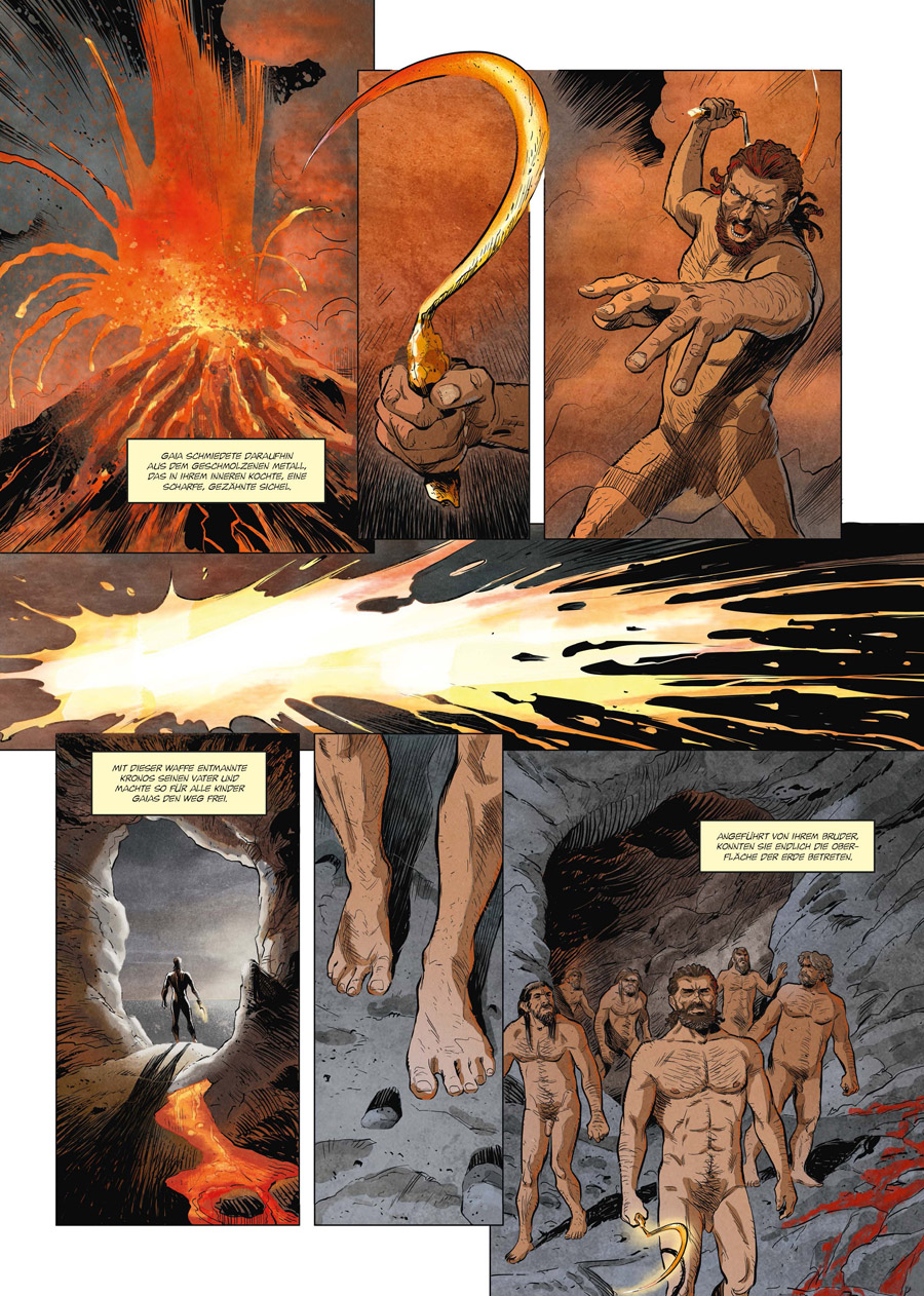 Geboren aus dem Geschlecht des Uranos, das vom Titanen Kronos abgetrennt und in den Ozean geworfen worden war, entstieg Aphrodite dem Meeresschaum und wurde zur Göttin der Liebe, der Schönheit und des Begehrens. Von da an entschieden ihre Launen über das Schicksal zahlreicher Menschen und Götter, denn Aphrodite hat die Macht, sie alle zu verführen. Doch sind nicht alle Liebschaften der Olympierin gleich geschaffen: Mit Ares verband sie eine stürmische Leidenschaft, aus der unter anderem die Brüder Phobos und Deimos hervorgingen, mit Hermes eine lockere Affäre, und ihm gebar sie den Hermaphroditos. Mit einem einfachen Sterblichen namens Anchises schließlich zeugte sie Aeneas, den Helden Trojas, dessen Schutz daraufhin zu Aphrodites höchstem Anliegen wurde. Selbst wenn sie dafür alles aufs Spiel setzt, was ihr lieb und teuer ist...Große Epen, mächtige Götter, phantastische Ungeheuer, außergewöhnliche Helden - die griechische Mythologie ist ein unerschöpflicher Quell wundervoller und aufregender Abenteuer. Auch heute können wir aus ihr lernen, und darum bildet sie immer noch ein Herzstück der humanistischen Bildung auf der ganzen Welt. »Mythen der Antike« lässt uns eine Reihe der wichtigsten Sagen als Comics neu entdecken. Unter der Leitung von Luc Ferry, dem ehemaligen französischen Bildungsminister, wurden die Originaltexte mit größter Sorgfalt adaptiert und graphisch brillant umgesetzt. Jeder Band präsentiert einen kompletten Mythos, dessen philosophisches und kulturelles Erbe in einem umfassenden Ergänzungsteil erläutert wird.