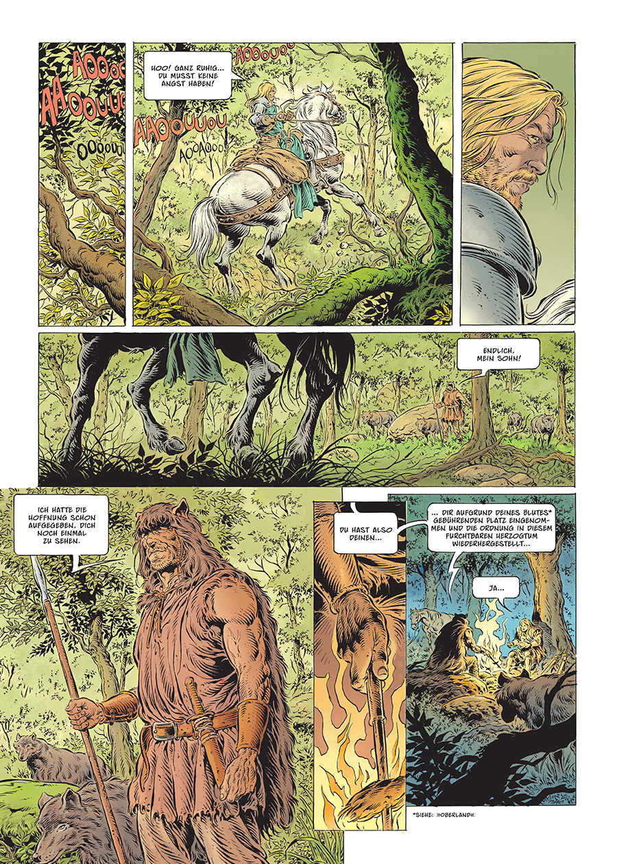Nachdem er seinen Thron zurückerobert hat, versucht Tristan von Halsburg, sich mit dem Leben bei Hofe zu arrangieren. Doch obwohl es ihm gelingt, einige Dinge im Reich gerade zu rücken, merkt er schnell, dass dieses Leben nicht für ihn geschaffen ist. Darum wendet Tristan sich wieder vom Hof ab und kehrt zurück in die Natur, in den Wald, in dem er aufgewachsen ist. Ruhe ist ihm jedoch nicht beschieden, denn nachts besuchen ihn dort die Eilen, betörende Kreaturen, die ihm im Schlaf die Seele rauben wollen...Hört die Legende des Ruhelosen Ritters! Mit seiner ersten Reihe im Fantasy-Genre eroberte der seinerseits legendäre Comic-Künstler Yves Swolfs (»Durango«, »Der Prinz der Nacht«, »Lonesome«) aus dem Stand die Bestsellerlisten. Weniger High Fantasy à la Tolkien als vielmehr düstere Phantastik im Stile Sapkowskis, ist »Legende« ein zeitloses Werk über den Kampf zwischen Gut, Böse und der bestialischen Natur des Menschen, das von Swolfs erzählerisch wie zeichnerisch brillant umgesetzt wird.Splitter veröffentlicht die überarbeitete Neuauflage der Bände 1-6 parallel zur Erstveröffentlichung der Folgebände ab Band 7.