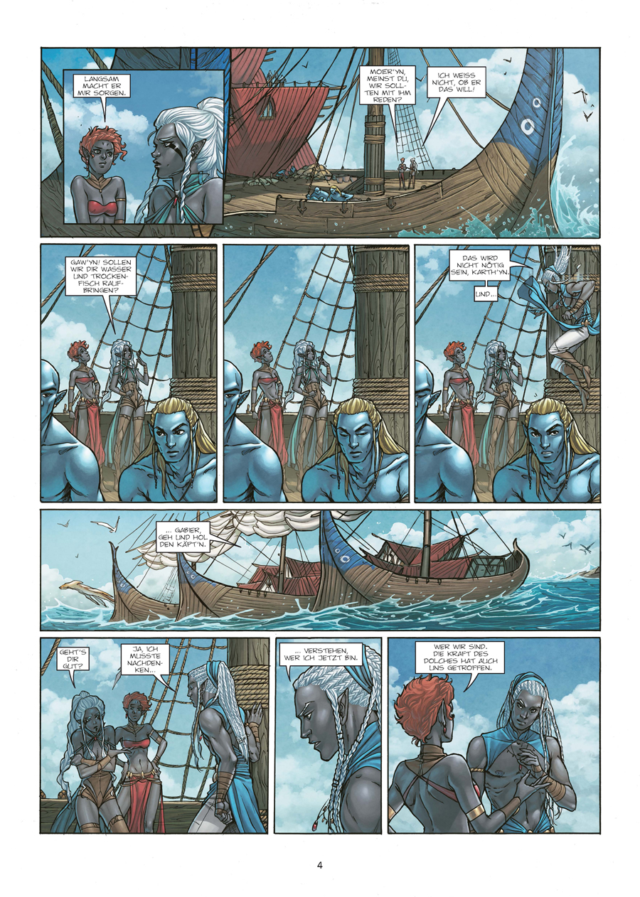 Auf dem Weg nach Locamee wird Gaw'yns Schiff überfallen. Die Angreifer hatten jedoch nicht mit einem Gegner wie Gaw'yn gerechnet, und dank seines Kampfgeschicks macht der Schwarzelf kurzen Prozess mit den Piraten. Das erweist sich als folgenträchtig, denn die Handelsstadt Locamee wird von einem Prinzen regiert, der mit den Kriminellen im Bunde stand. Obendrein findet Gaw'yn unfreiwillig heraus, dass der sadistische Regent widerliche Treibjagden auf Elfen veranstaltet, denn er ist überzeugt, dass die Herrschaft der Menschen über Arran unangefochten sein sollte.»Elfen« ist die erste große Fantasy-Konzeptserie. Das bedeutet: Jeder Band ist in sich abgeschlossen und wird von einem anderen Team aus Szenarist und Zeichner realisiert und jeder Band spielt in derselben fantastischen Welt: Arran. Nach und nach füllt sich die Welt von Arran mit immer mehr faszinierenden Figuren, und ein Handlungsbogen von epochalem Ausmaß offenbart sich...Abschlussband des Zyklus