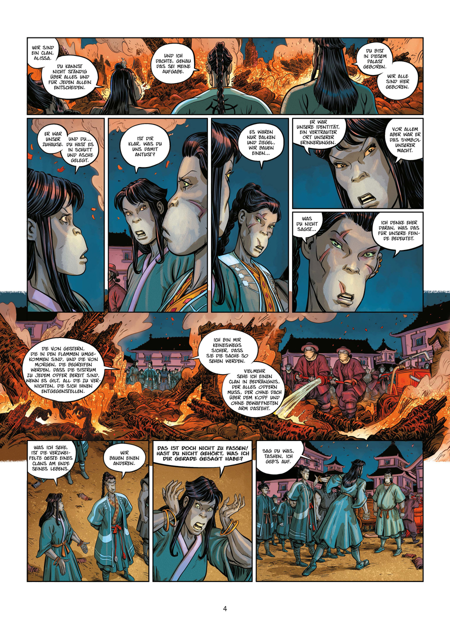 Der Plan von Alissa und Fakeri ist aufgegangen. Vom Größenwahn verblendet marschierte der Coucal direkt ins feurige Verderben. Doch innerhalb des Sistrum-Clans wird dieser Komplott tiefe Spuren hinterlassen. Während in Thori leise Zweifel aufkeimen und Shin Takus Zeuge ihm weiterhin das Leben schwer macht, machen die Schüler im Dschungel eine bedeutende Entdeckung.Der zweite Zyklus der »5 Reiche« führt die mitreißende Geschichte des fantastischen Reiches voller Intrigen und Verrat, Tücken und Krieg kongenial fort! Die Welt und ihre Figuren gewinnen stetig an Facetten, und eine Überraschung jagt die nächste in einem epischen Handlungsbogen, auf den George R. R. Martin stolz sein könnte. Dabei übersetzen Zeichner Jérôme Lereculey und sein Team die Vision der Autoren weiterhin in atemberaubende Bilderreigen.