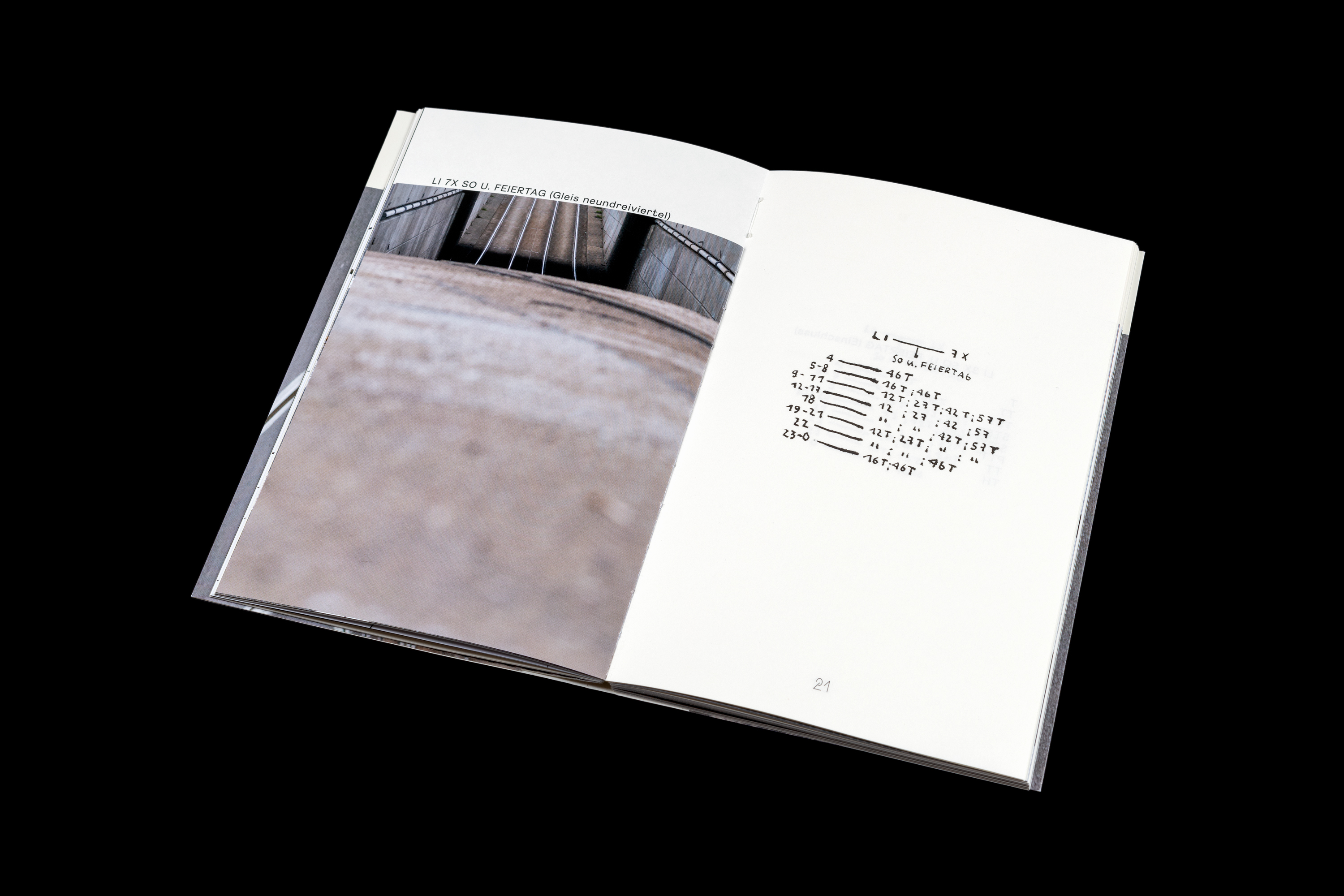 Das Künstlerduo Paula Hohengarten & Moritz Zeller reagiert mit detailverliebtem Fotoblick sowohl auf die Zeichnung, als auch auf die Gedichte und rückt den Waldplatz damit auf ganz spezielle Weise ins Zentrum der gemeinsamen Arbeit. Es sind Strukturen von Fußböden und Schienen, Oberflächen von Haltestellenhäuschen, grafische Linien, welche die Oberleitung in den Himmel schreibt, Schilder, Pfeile und vieles mehr, was den Platz ausmacht, oft aber übersehen wird.