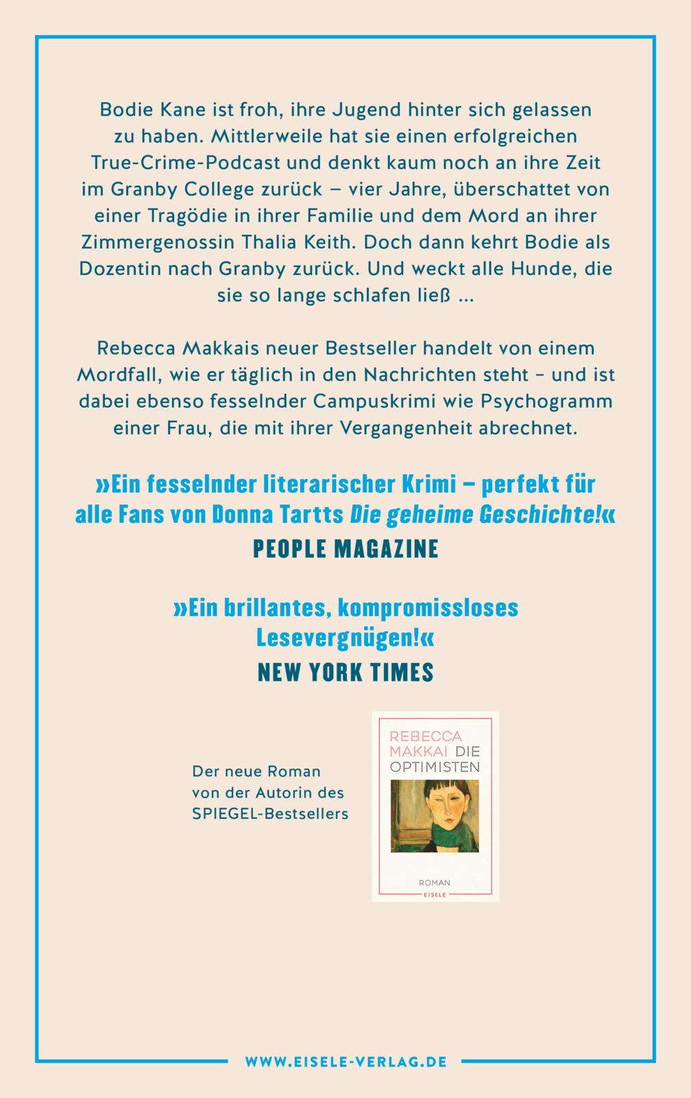 Immer deutlicher steht die Frage im Raum, ob mit dem Sporttrainer Omar Evans damals der richtige Täter gefasst wurde - und Bodie wird klar, dass sie etwas über den wahren Mörder weiß, etwas, das schon seit den 90er Jahren in ihrem Unterbewusstsein verschüttet liegt.Rebecca Makkais neuer Roman handelt von einem Mordfall, wie er täglich in den Nachrichten steht - und ist dabei ebenso fesselnder Campuskrimi wie Pychogramm einer Frau, die mit ihrer Vergangenheit abrechnet.