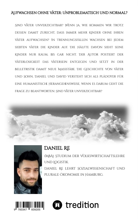 Sind Väter unverzichtbar? Wenn ja, wie kommen wir trotz dessen damit zurecht, dass immer mehr Kinder ohne ihren Vater aufwachsen? In Trennungsfällen wachsen bei jedem siebten Vater die Kinder auf. Die Hälfte davon sieht ihren Vater nur kaum, bis gar nicht. Der Autor postiert der Vaterlosigkeit das Vatersein entgegen und setzt in der Belletristik damit neue Maßstäbe. Die Geschichte von Vater und Sohn, Daniel und David versteht sich als Plädoyer für eine humanistische Herangehensweise, wenn es darum geht die Frage zu beantworten: Sind Väter unverzichtbar? Das Buch soll Eltern in schwierigen Findungsphasen des Lebens ein Hilfswerk darbieten. Hierzu zählen vor allem die Reuephase den eigenen Eltern gegenüber. Ebenso die atomatisierte Angstphase, eine auf jede Handlung des Kindes gerichtete Angst.