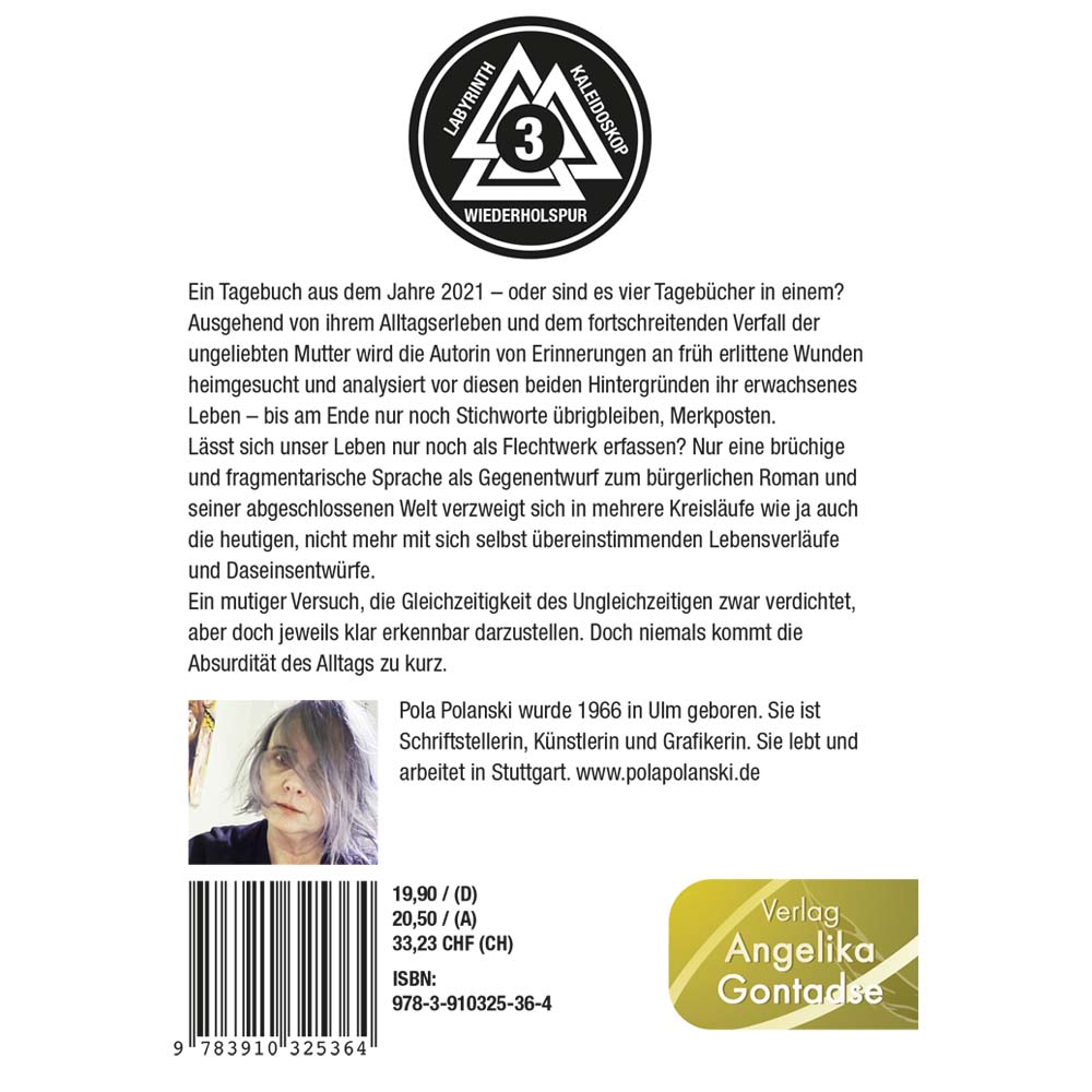 Pola Polanski ist Grafikerin und hat 1998–2015 in Werbeagenturen und Verlagen gearbeitet; seit 2016 ist sie freischaffende Künstlerin, Grafikerin und Schriftstellerin und hat 2018–2020 ein Fernstudium ‹Prosaschreiben› bei der Textmanufaktur absolviert. Ihr literarisches Schaffen kreist derzeit um ihren eigenen, immer wieder von Dämonen verschütteten Lebensweg und ähnliche Frauenschicksale aus ihrer Umgebung. Stets überschneiden und durchdringen sich mehrere Erzählebenen und Textsorten in einem dichten Geflecht. Pola Polanski hat gerade in kurzer Folge 7 Romane im Genre Autofiktion veröffentlicht: erst ‹Abschied›, ‹Ich bin Virginia Woolf›, ‹Geile Farben› (alle 2020), dann ‹Die schwarzen Engel›, ‹Das Wolfsbaby›, ‹Mein Alter Ego›, ‹Von der Jagd nach Vögeln› (alle underDog-Verlag, Hamburg, 2021). Sie hat zahlreiche Fortbildungen über literarisches Schreiben und autobiografisches Schreiben absolviert und nimmt regelmäßig an Romanwerkstätten im Schriftstellerhaus Stuttgart teil.