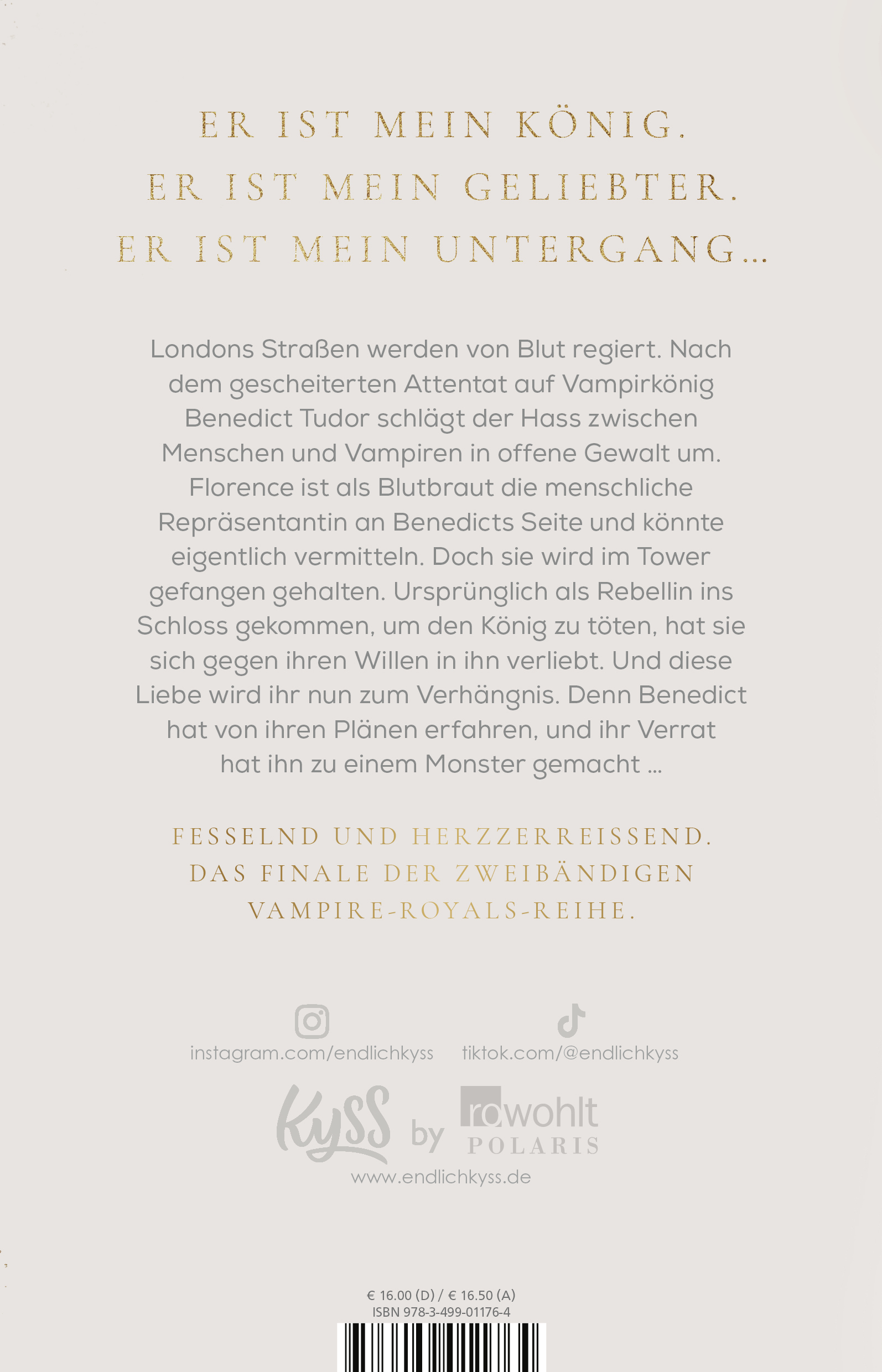 Londons Straßen werden von Blut regiert. Nach dem gescheiterten Attentat auf Vampirkönig Benedict Tudor schlägt der Hass zwischen Menschen und Vampiren in offene Gewalt um. Florence ist als Blutbraut die menschliche Repräsentantin an Benedicts Seite und könnte eigentlich vermitteln. Doch sie wird im Tower gefangen gehalten. Ursprünglich als Rebellin ins Schloss gekommen, um den König zu töten, hat sie sich gegen ihren Willen in ihn verliebt. Und diese Liebe wird ihr nun zum Verhängnis. Denn Benedict hat von ihren Plänen erfahren, und ihr Verrat hat ihn zu einem Monster gemacht ...