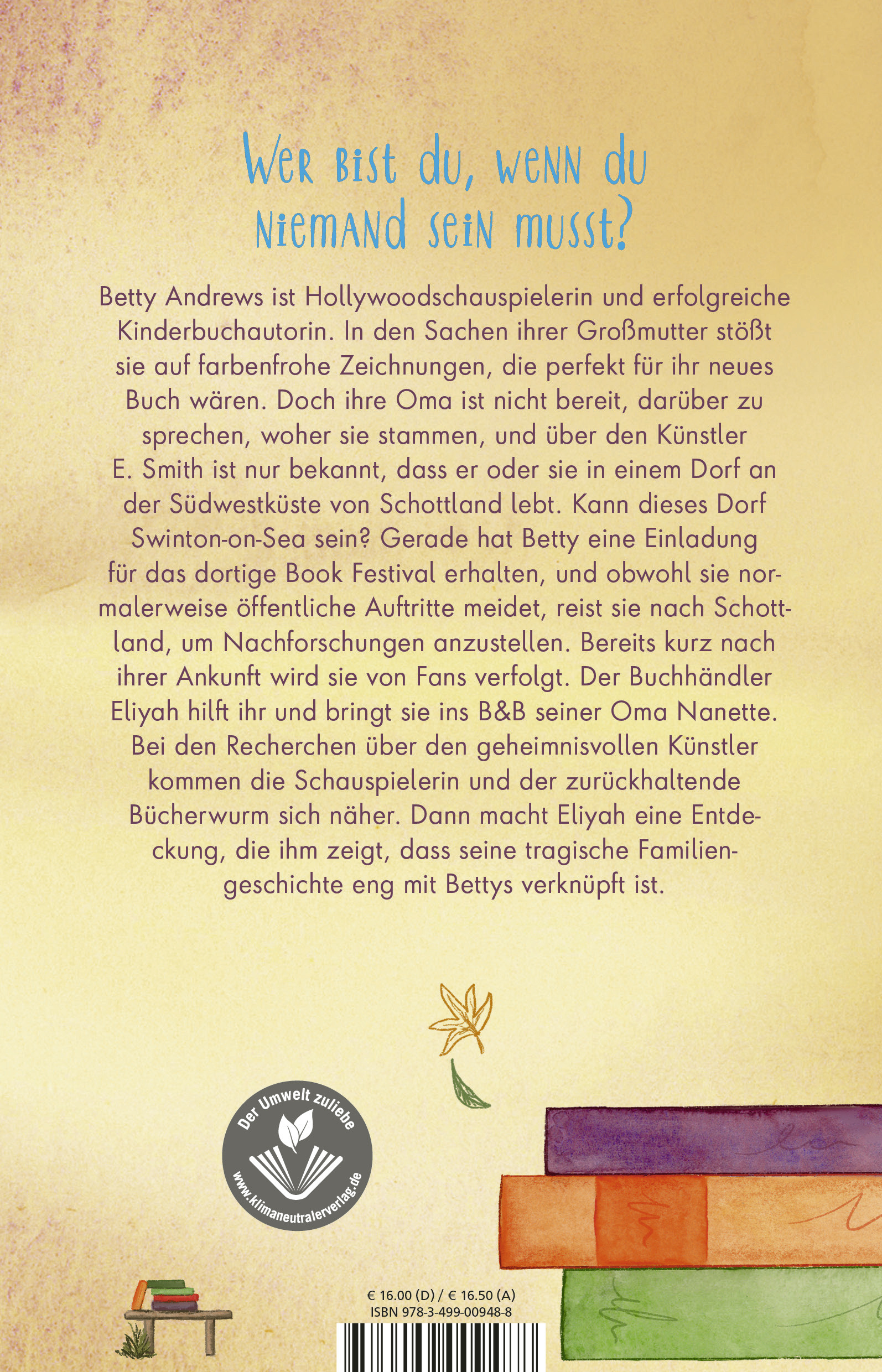 Betty Andrews ist nicht nur Hollywoodschauspielerin, sie schreibt auch erfolgreich Kinderbücher. In den Unterlagen ihrer Großmutter stößt sie auf farbenfrohe Zeichnungen, die wunderbare Illustrationen für ihre Bücher wären. Doch ihre Oma ist nicht bereit, darüber zu sprechen, woher sie stammen, und über den Künstler E. Smith ist nur bekannt, dass er oder sie in einem Dorf an der Südwestküste von Schottland lebt. Kann dieses Dorf Swinton-on-Sea sein? Gerade hat Betty eine Einladung für das dortige Book Festival erhalten, und obwohl sie normalerweise öffentliche Auftritte meidet, reist sie nach Schottland, um Nachforschungen anzustellen. Bereits kurz nach ihrer Ankunft wird sie enttarnt und von Fans verfolgt. Der Buchhändler Eliyah hilft ihr und bringt sie ins B&B seiner Oma Nanette. Bei den Recherchen über den geheimnisvollen Künstler kommen die Schauspielerin und der zurückhaltende Bücherwurm sich näher. Dann macht Eliyah in der Bibliothek eine Entdeckung, die ihm zeigt, dass seine tragische Familiengeschichte eng mit der Bettys verknüpft ist.
