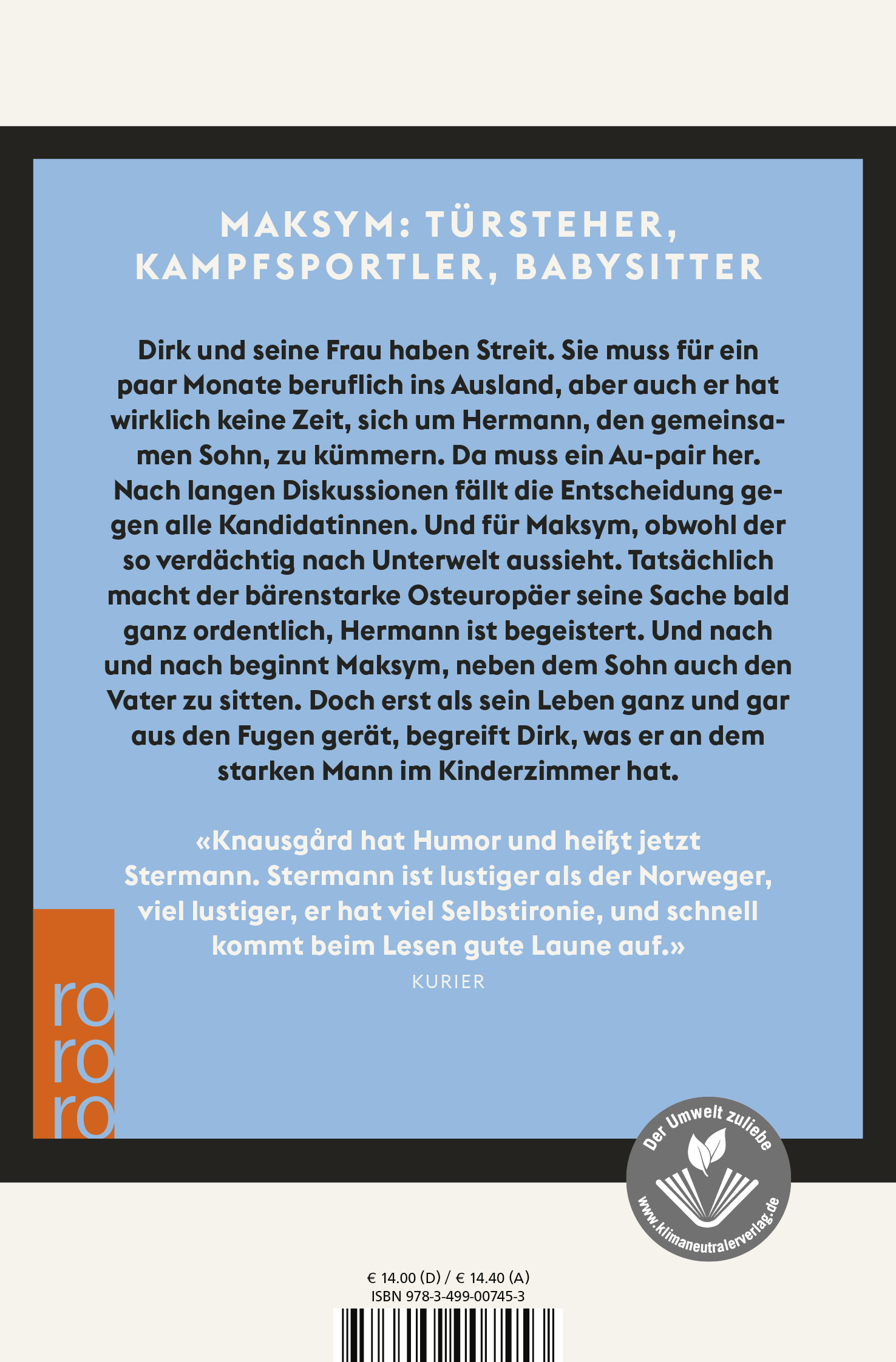 Dirk Stermanns Roman «Sechs Österreicher unter den ersten fünf», der sich allein in Österreich über hundertfünfzigtausend Mal verkaufte, hatte einen Helden namens Dirk Stermann. Nun hat der Autor ein neues Buch über diesen Mann geschrieben. Es beginnt wie eine amüsante Gesellschaftssatire aus dem heutigen Wien: Dirk und seine Frau stehen vor einem Problem. Sie muss für ein paar Monate beruflich ins Ausland, aber er hat jetzt wirklich keine Zeit, sich den ganzen Tag um den gemeinsamen Sohn, Hermann, zu kümmern. Professionelle Hilfe muss also her. Freunde empfehlen, sehr modern, einen männlichen Babysitter. Sie hätten einen Ukrainer, sehr erfahren und gebildet, immer ein Zitat von Joseph Roth auf den Lippen.
