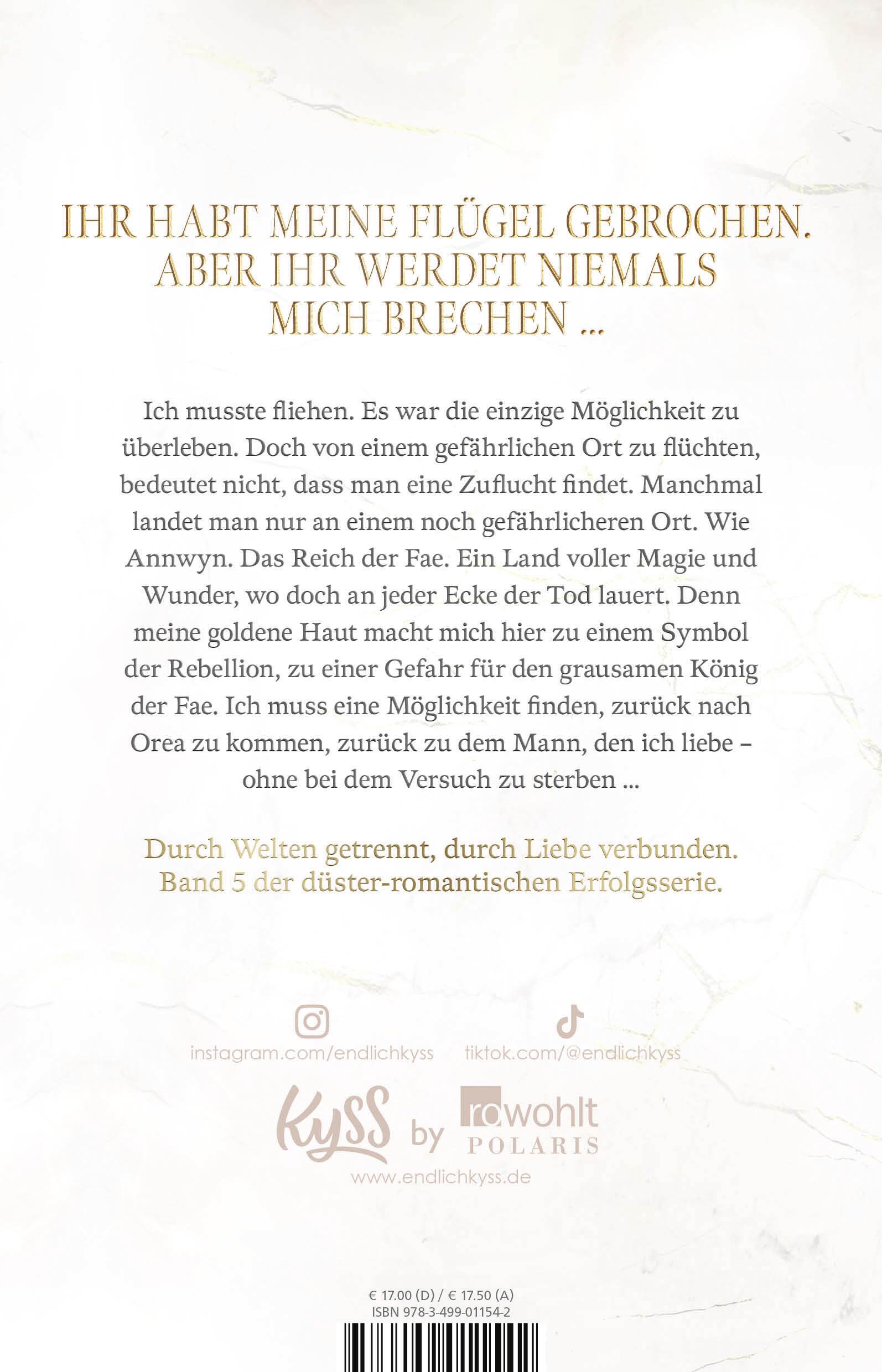 Ich musste fliehen. Es war die einzige Möglichkeit zu überleben. Doch von einem gefährlichen Ort zu flüchten, bedeutet nicht, dass man eine Zuflucht findet. Manchmal landet man nur an einem noch gefährlicheren Ort. Wie Annwyn. Das Reich der Fae. Ein Land voller Magie und Wunder, wo doch an jeder Ecke der Tod lauert. Denn meine goldene Haut macht mich hier zu einem Symbol der Rebellion, zu einer Gefahr für den grausamen König der Fae. Ich muss eine Möglichkeit finden, zurück nach Orea zu kommen, zurück zu dem Mann, den ich liebe - ohne bei dem Versuch zu sterben ...