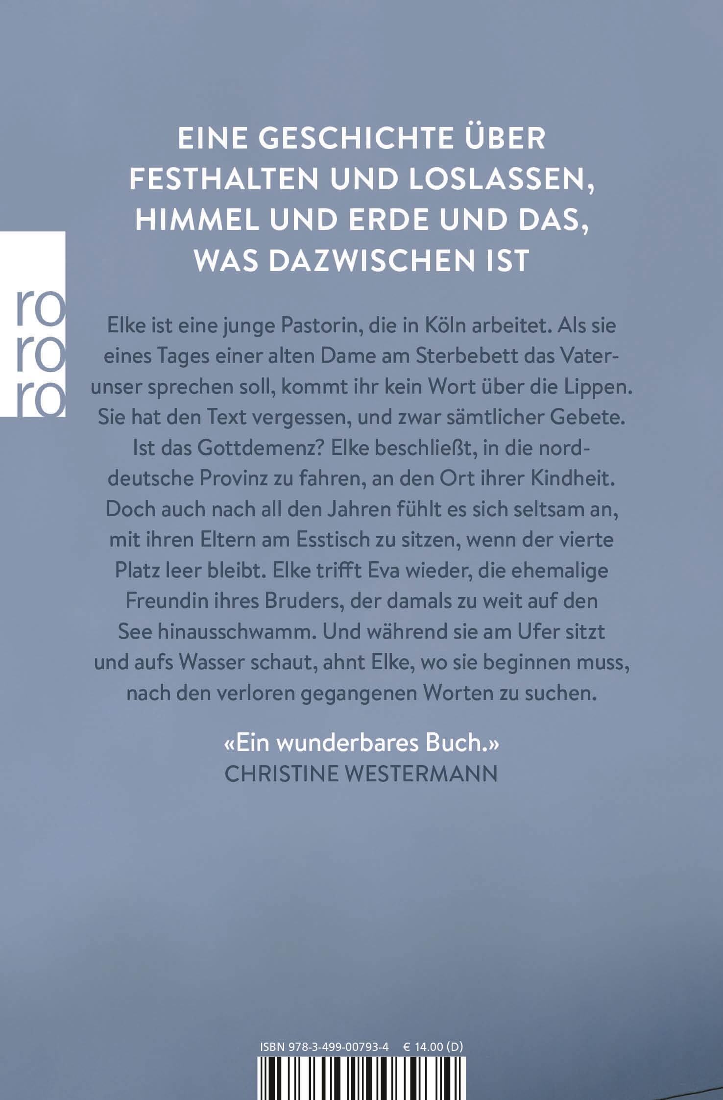Elke beschließt, in die norddeutsche Provinz zu fahren, an den Ort ihrer Kindheit. Doch auch nach all den Jahren fühlt es sich seltsam an, mit ihren Eltern am Esstisch zu sitzen, wenn der vierte Platz leer bleibt. Elke trifft Eva wieder, die ehemalige Freundin ihres Bruders, der damals zu weit auf den See hinausschwamm. Und während sie am Ufer sitzt und aufs Wasser schaut, ahnt Elke, wo sie beginnen muss, nach den verloren gegangenen Worten zu suchen.
