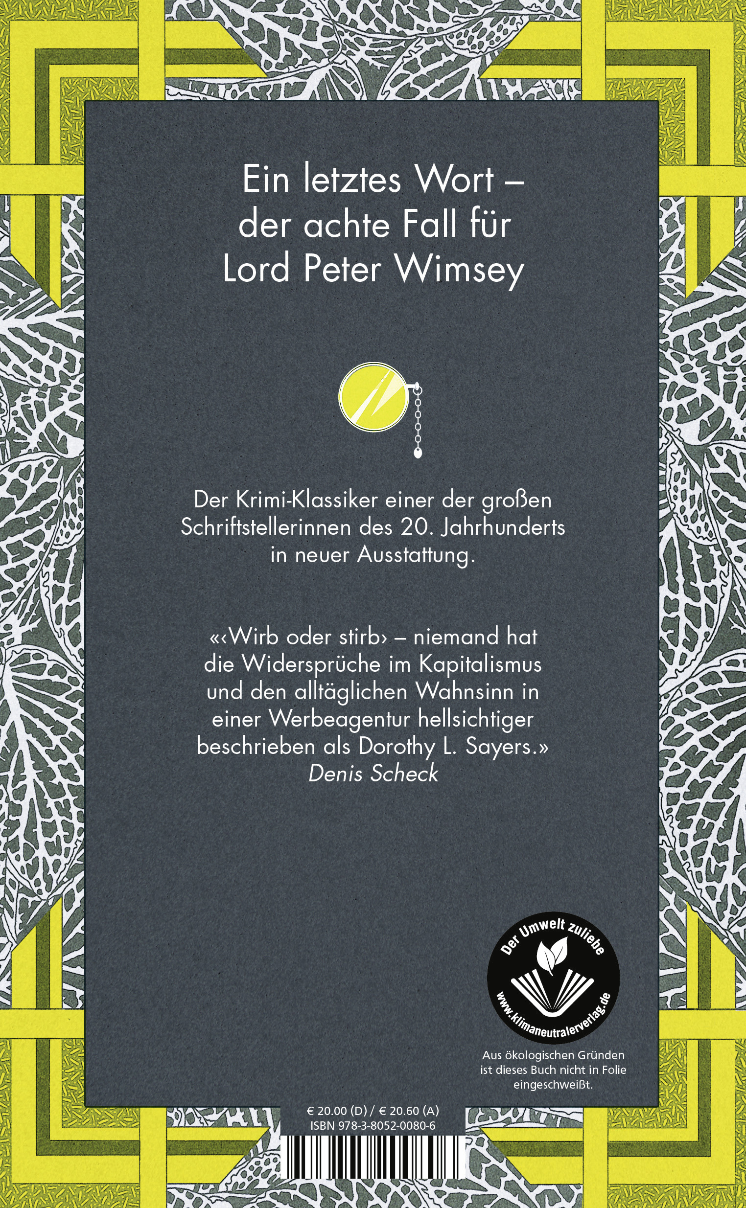 | Schlagworte | Agatha Christie • Arthur Conan Doyle • Band 8 • Britischer Humor • Cosy Crime • Denis Scheck • detektivroman • Englischer Krimi • historischer Krimi • Klassiker • Klassischer Krimi • Krimi • Kriminalroman • Krimireihe • Krimiserie • Literaturkanon • London • Lord Peter Wimsey • Mad Men • Miss Marple • Sherlock Holmes • spannende Bücher |