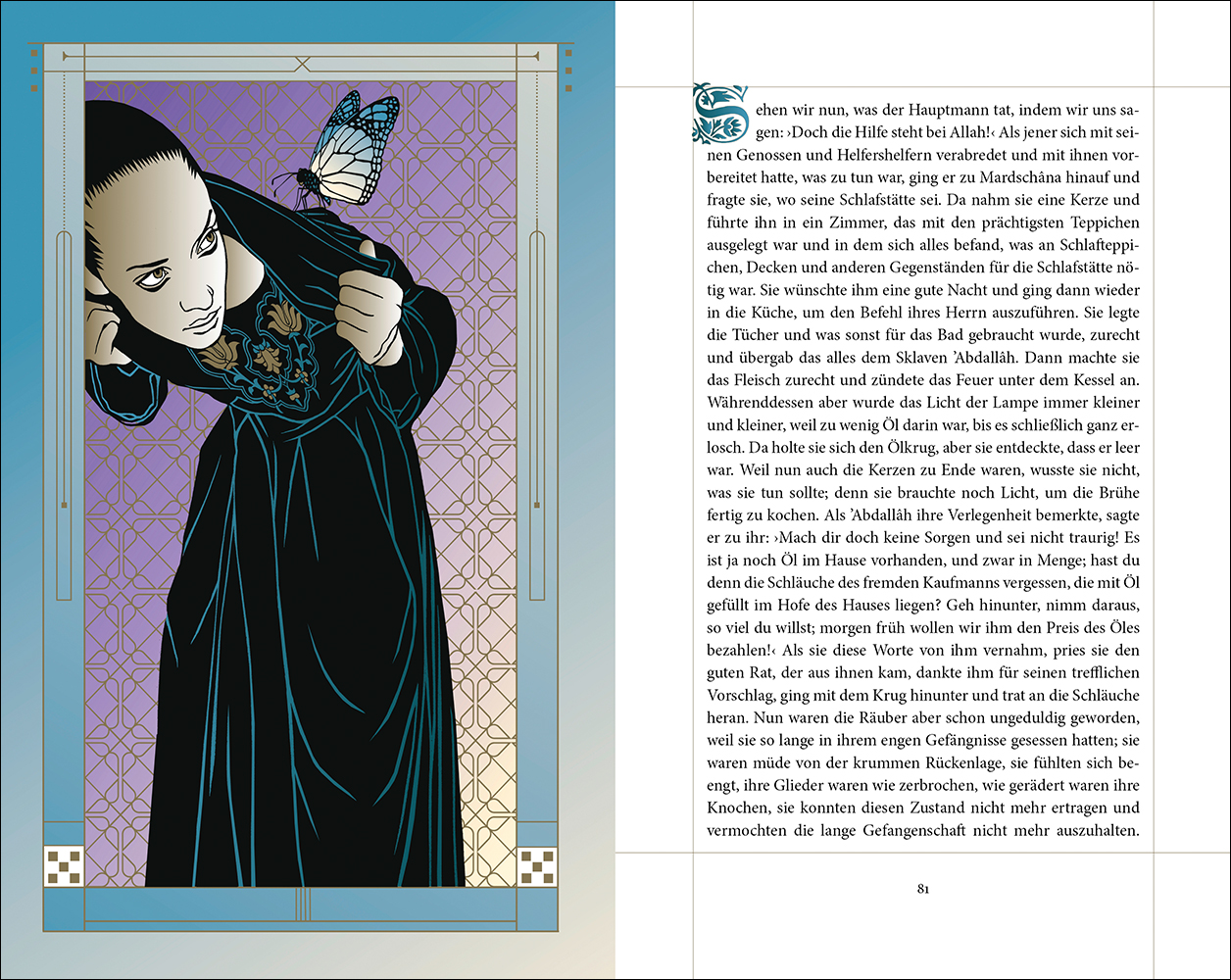 Diese Geschichte ist weltbekannt: Der arme Holzfäller Ali Baba, der, im dichten Geäst verborgen, das geheime Codewort »Sesam, öffne dein Tor!« einer Räuberbande mit angehört hat, findet in der Felsenhöhle deren »Schätze«: Teppiche, Gewänder, Goldmünzen und Edelsteine. Um seine bescheidenen Verhältnisse zu verbessern, nimmt er einige der Goldstücke mit nach Hause. Doch die Räuber kommen ihm auf die Spur und Ali Baba kann sich nur mit Hilfe seiner schlauen Dienerin Mardschana retten. Das Märchen gehört zu den berühmtesten Erzählungen Scheharazades aus Tausendundeiner Nacht. Der Illustrator und Buchgestalter Burkhard Neie hat sich des klassischen Textes für die Insel-Bücherei angenommen und eine Ausgabe geschaffen, die so prächtig ist, dass sie selbst in der Bibliothek einer Königin stehen könnte!