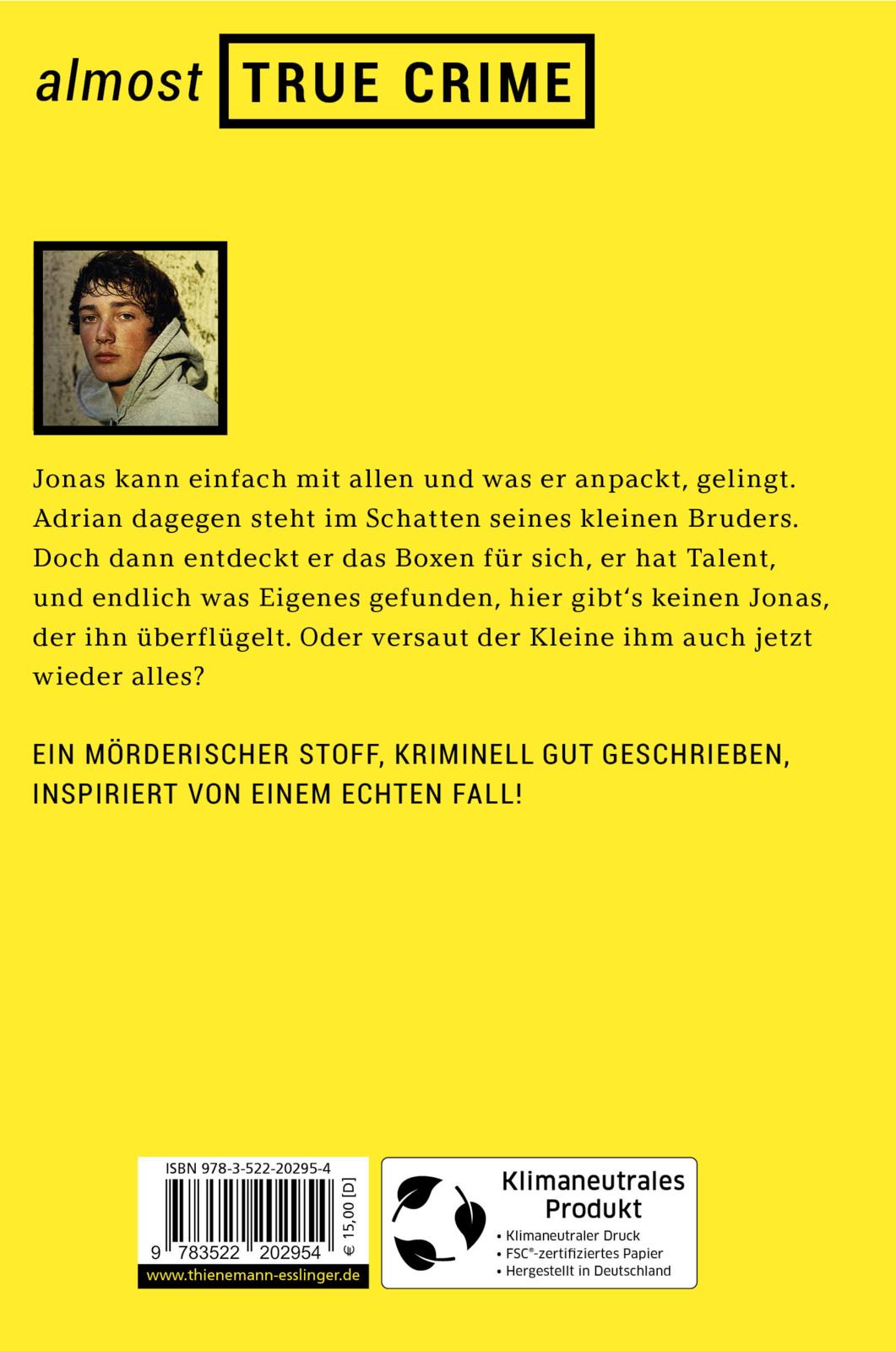| Schlagworte | Adoption • Boxen • Boxkampf • Brudermord • Drama • Hass • Jugendbuch • Jugendliche Straftäter • Jugendroman • Jugendthriller • Krimi • Kriminalfall • Mörder • Mordfall • Spannung • Straftat • Thriller • Tod • True Crime • Verzweiflung • Wahre Verbrechen |