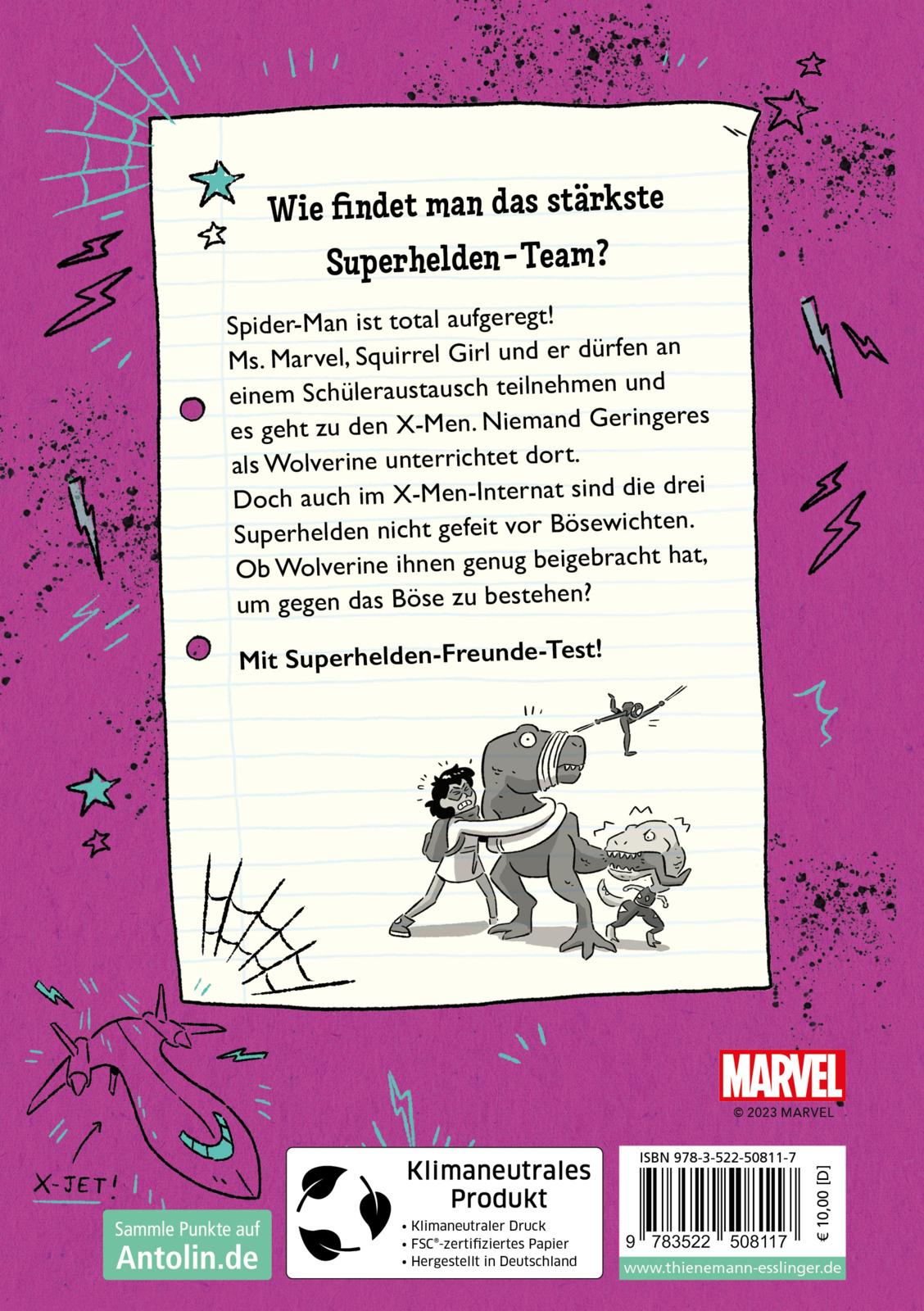 Spider-Man ist total aufgeregt! Ms. Marvel, Squirrel Girl und er dürfen an einem Schüleraustausch teilnehmen und es geht zu den X-Men! Niemand geringeres als Wolverine unterrichtet dort. Doch auch im X-Men-Internat sind die drei kleinen Superheld*innen nicht gefeit vor Bösewichten. Ob Wolverine ihnen genug beigebracht hat, um gegen das Böse zu bestehen?
