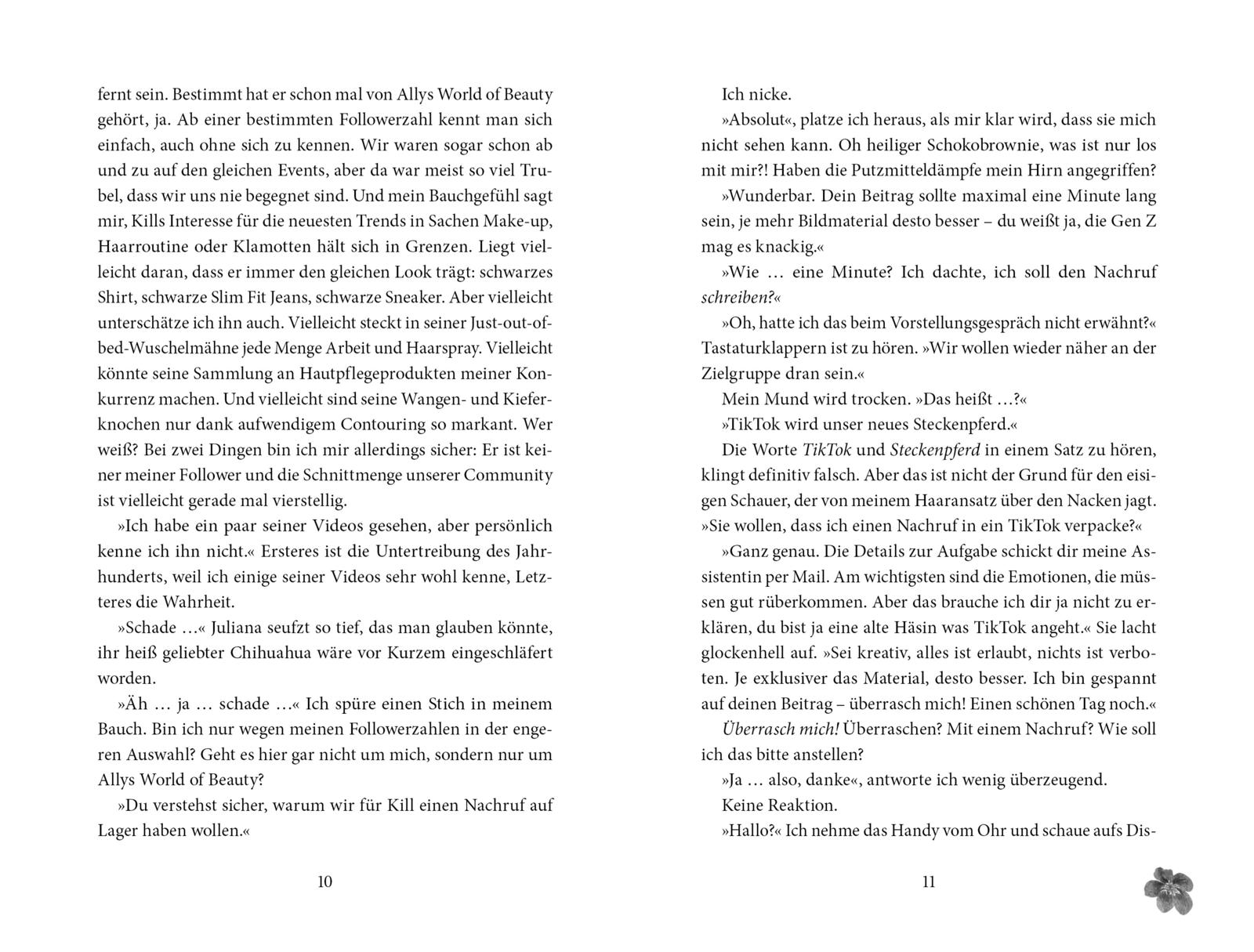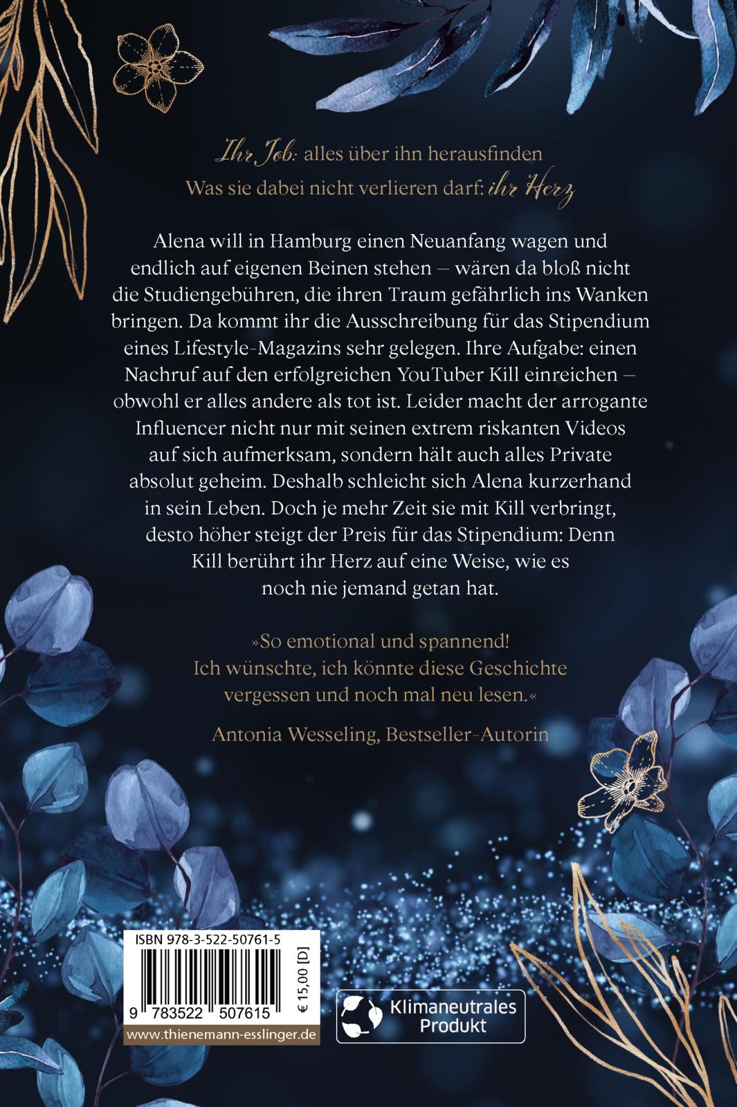 Alena will einen Neuanfang wagen: weg von ihrer toxischen Mutter, endlich auf eigenen Beinen stehen. Um an ihrer Traum-Uni in Hamburg studieren zu können, muss sie für ein Stipendium einen Nachruf über den YouTuber Kill einreichen. Doch der arrogante Mädchenschwarm ist nicht nur unverschämt sexy, sondern auch alles andere als tot. Wobei das niemanden wundern würde, so waghalsig wie er in seinen YouTube-Challenges mit seinem Leben umgeht. Auf der Suche nach seinem dunkelsten Geheimnis, schleicht Alena sich kurzerhand in Kills Leben. Allerdings hat sie nicht mit der Anziehung gerechnet, die ab der ersten Minute zwischen Kill und ihr herrscht. Und je mehr Zeit sie mit ihm verbringt, desto höher steigt der Preis für das Stipendium: Denn dass Alena sich in Kill verliebt, war nie Teil des Plans ...