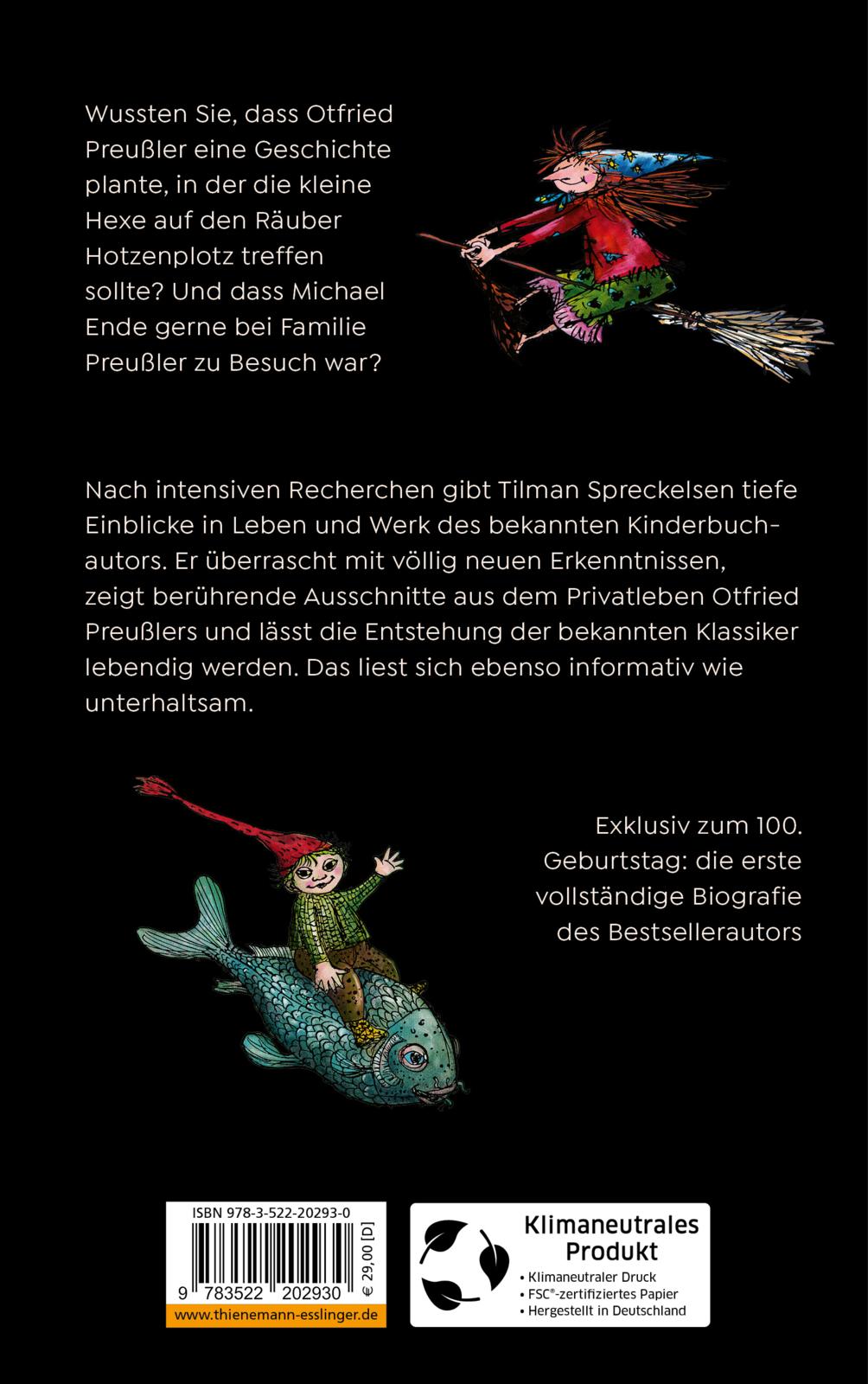 Wussten Sie, dass Otfried Preußler eine Geschichte plante, in der die kleine Hexe auf den Räuber Hotzenplotz treffen sollte? Und dass Michael Ende gerne bei Familie Preußler zu Besuch war? Immerhin hatten Preußler und Ende ein großes gemeinsames Interesse: Zauberei und Hexenkünste. Nach intensiven Recherchen gibt Tilman Spreckelsen tiefe Einblicke in Leben und Werk des bekannten Kinderbuchautors. Er überrascht mit völlig neuen Erkenntnissen, zeigt berührende Ausschnitte aus dem Privatleben Otfried Preußlers und lässt die Entstehung der bekannten Klassiker lebendig werden. Eine Biografie, die sich ebenso informativ wie unterhaltsam liest. So nah sind Leserinnen und Leser dem berühmten Autor bisher nicht gekommen!