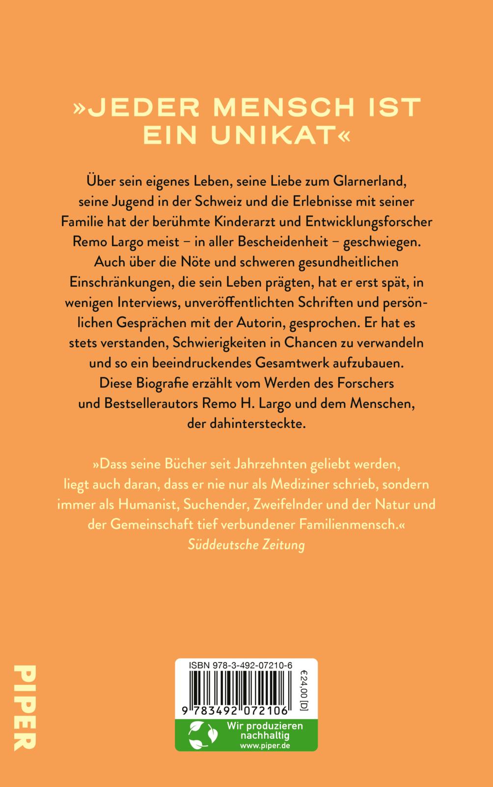 Als Remo Largo im November 2020 starb, war die Trauer groß. Die breite Öffentlichkeit kannte ihn als unermüdlichen Anwalt der Kinder, jemanden, der die Individualität des Einzelnen in den Mittelpunkt seines Denkens stellte und uns aufforderte, über ein passendes Leben für alle nachzudenken. Millionen Familien profitierten davon. Doch wer war der Mensch hinter dem Entwicklungsforscher, Kinderarzt und Bestsellerautor? Monika Czernin erzählt von Largos Kindheit und Jugend, der Zeit in Amerika, seiner Familie und seinen Kindern und davon, wie sein beruflicher Werdegang die Kinderheilkunde prägte.