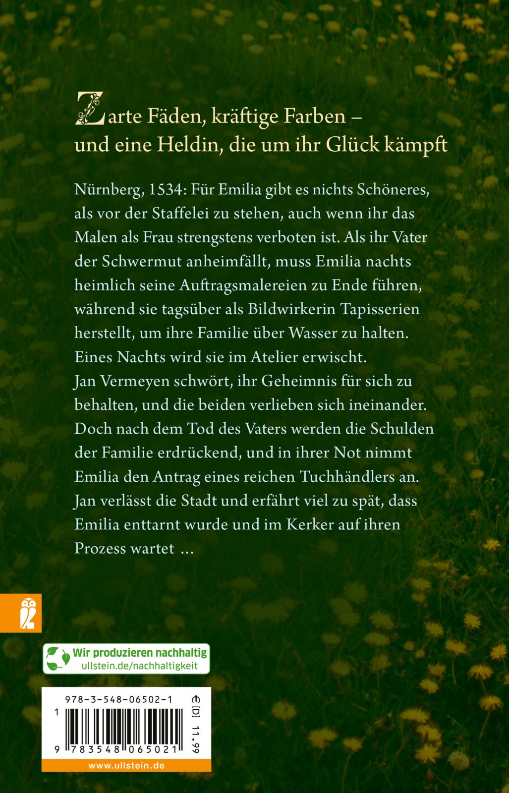 Nürnberg, 1534: Für Emilia gibt es nichts Schöneres, als vor der Staffelei zu stehen und zu malen, auch wenn ihr das als Frau strengstens verboten ist. Als ihr Vater der Schwermut anheimfällt, muss Emilia nachts heimlich seine Auftragsmalereien zu Ende führen, während sie tagsüber als Bildwirkerin Tapisserien herstellt, um sich und ihre Schwester über Wasser zu halten. Eines Nachts wird sie im Atelier erwischt. Jan Vermeyen schwört, ihr Geheimnis für sich zu behalten, und die beiden verlieben sich ineinander. Doch nach dem tragischen Tod des Vaters werden die Schulden der Familie erdrückend, und in ihrer Not nimmt Emilia den Antrag eines reichen Tuchhändlers an. Jan verlässt die Stadt und erfährt viel zu spät, dass Emilia enttarnt wurde und im Kerker auf ihren Prozess wartet ...