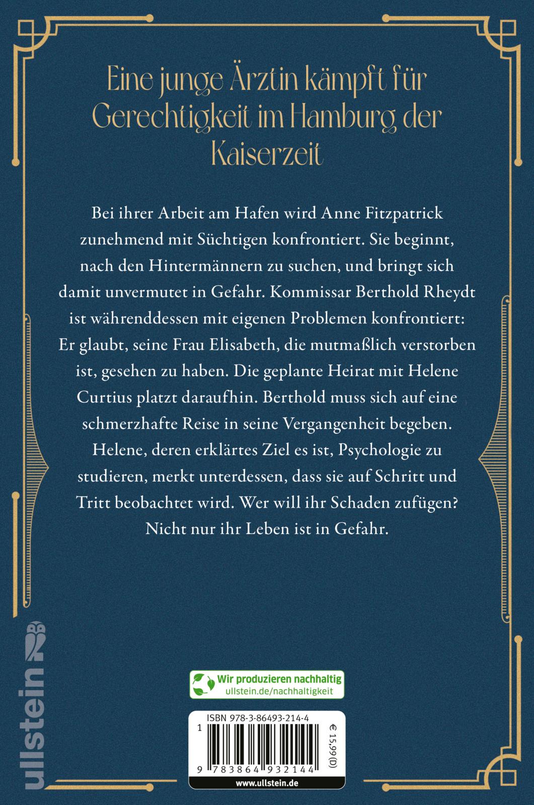 Hamburg im Herbst 1911: Bei ihrer Arbeit am Hamburger Hafen wird Anne Fitzpatrick zunehmend mit Süchtigen konfrontiert. Sie beginnt, nach den Hintermännern zu suchen, und bringt sich damit unvermutet in Gefahr - doch auch ihre Freundin Ju lebt gefährlich. Die Chinesin gerät in den Dunstkreis eines Triaden und macht eine ungeheuerliche Entdeckung. Kommissar Berthold Rheydt ist währenddessen mit eigenen Problemen konfrontiert: Er glaubt, seine Frau Elisabeth, die mutmaßlich verstorben ist, gesehen zu haben. Die geplante Heirat mit Helene Curtius platzt daraufhin. Berthold muss sich auf eine schmerzhafte Reise in seine Vergangenheit begeben. Helene, deren erklärtes Ziel es ist, Psychologie zu studieren, merkt unterdessen, dass sie auf Schritt und Tritt beobachtet wird. Wer will ihr Schaden zufügen? Nicht nur ihr Leben scheint in Gefahr zu sein.