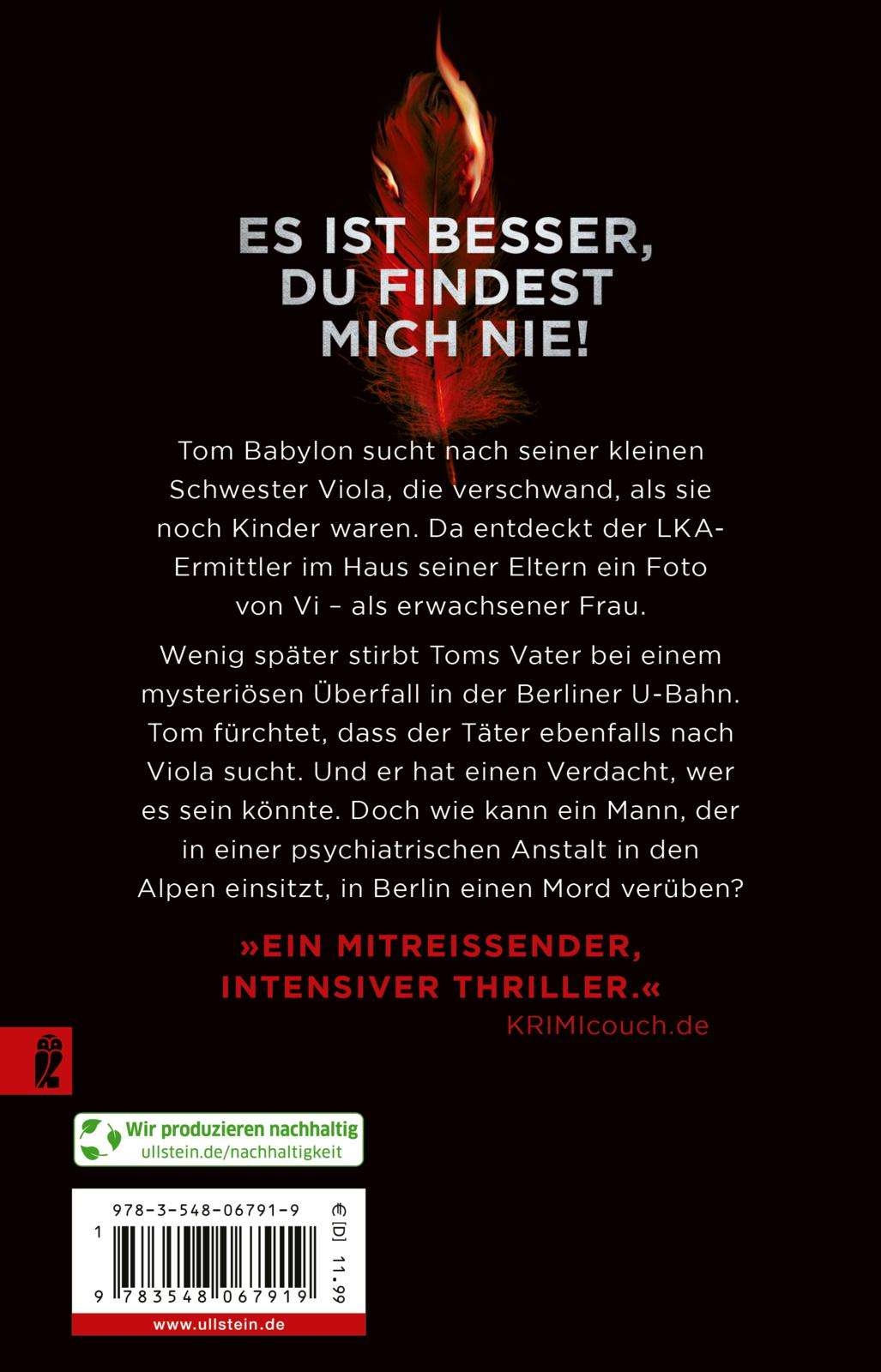 LKA-Ermittler Tom Babylon ist wie elektrisiert. Seit vielen Jahren sucht er nach seiner kleinen Schwester Vi. Und plötzlich gibt es einen Hinweis: Ein Foto von Viola als erwachsene Frau, das er im Keller seines Elternhauses findet.