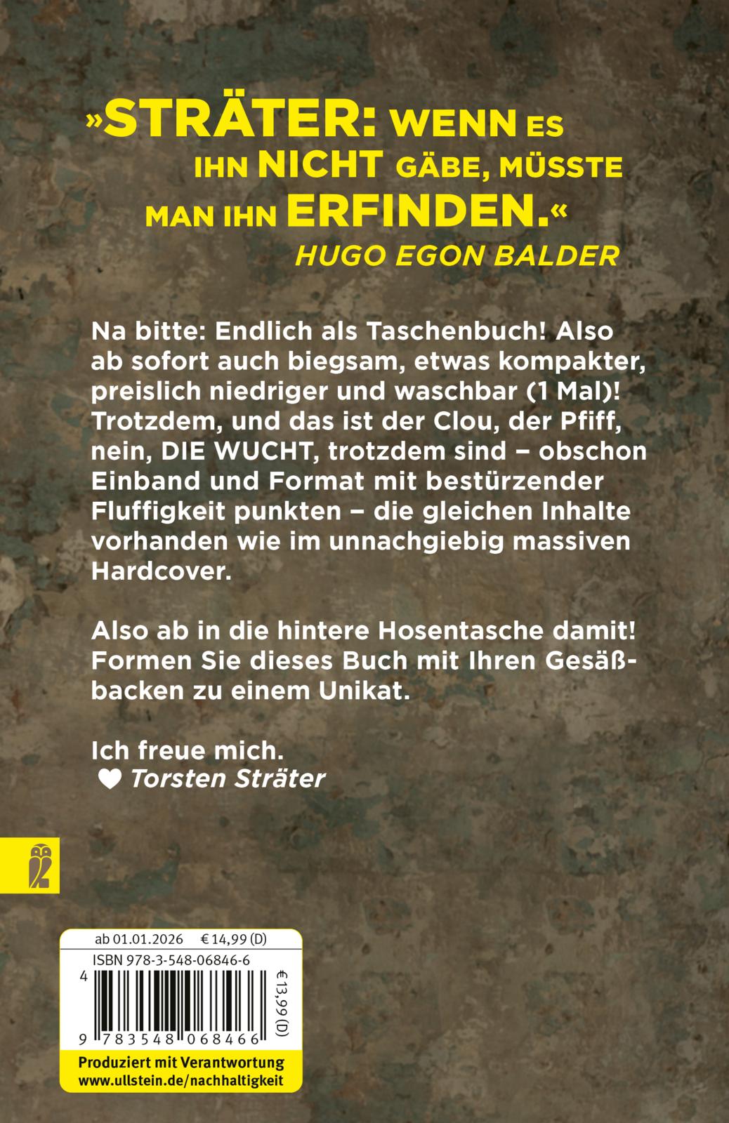 Ein neues Buch vom Meister des Abschweifens. Es handelt sich hierbei um die besten Geschichten der letzten drei Jahre. Storys mit Pfiff. Eine Führung durch die ganze Welt der Idiotie, verbunden mit der Einsicht, dass nichts menschlicher ist als das Missgeschick. Ferner: seltsame Berichte vom Rand der schiefen Ebene. Schilderungen, die man sich auf gar keinen Fall verkneifen kann. Und zwischendurch paar Infos darüber, was sonst noch so war. Kurz: ein seriöses Konzept. Und Sträter gelobt, es sehr lustig zu gestalten.