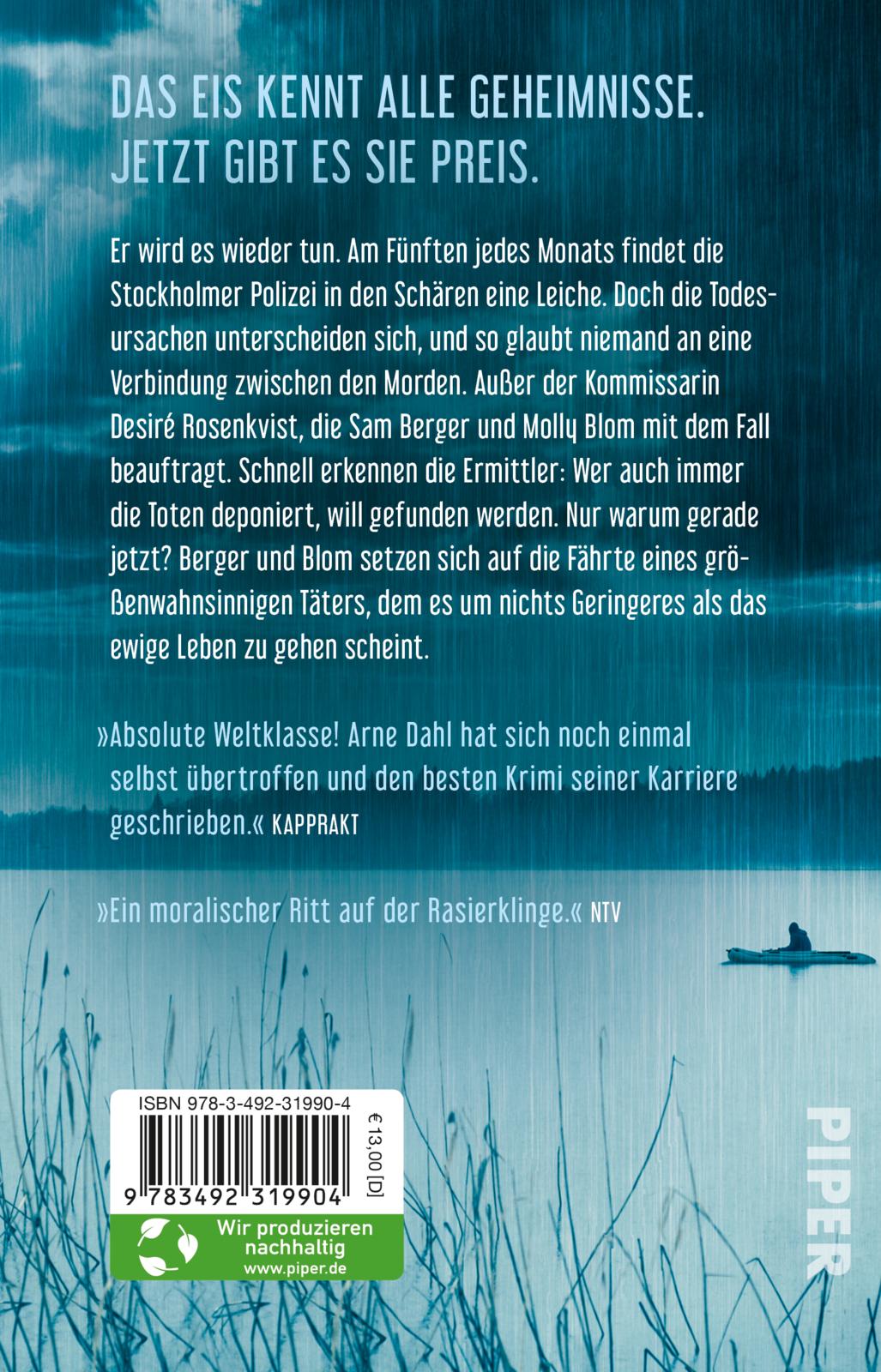 Er wird es wieder tun. Am Fünften jedes Monats findet die Stockholmer Polizei in den Schären eine Leiche. Doch die Todesursachen unterscheiden sich, und so glaubt niemand an eine Verbindung zwischen den Morden. Niemand außer Kommissarin Desiré Rosenkvist, die Sam Berger und Molly Blom mit dem Fall beauftragt. Obwohl die Ermittler im Verborgenen agieren müssen, erkennen sie: Wer auch immer die Toten deponiert, will gefunden werden. Nur warum gerade jetzt? Berger und Blom setzen sich auf die Fährte eines größenwahnsinnigen Täters, dem es um nichts Geringeres als das ewige Leben zu gehen scheint.