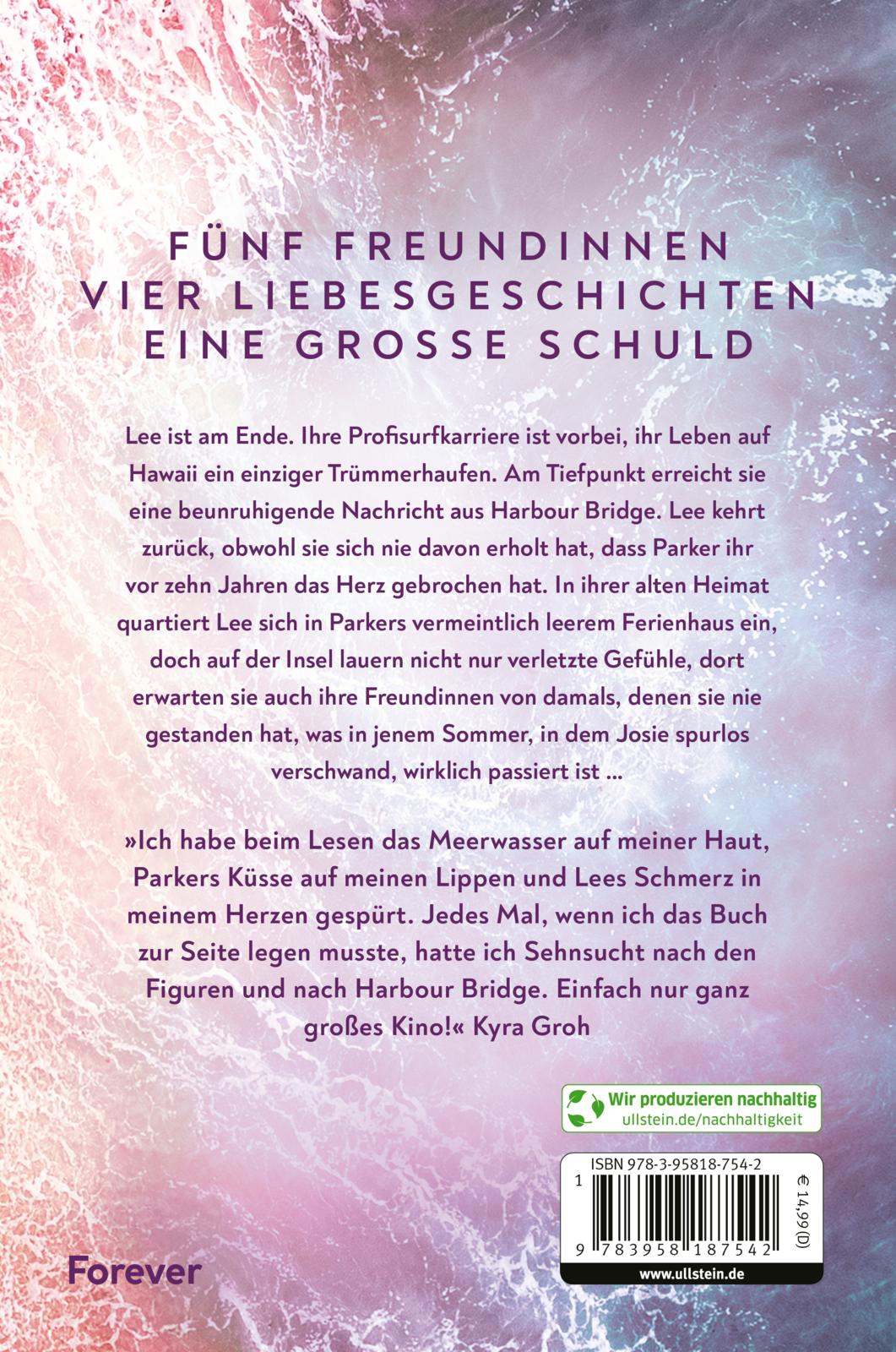 Lee ist am Ende. Ihre Profisurfkarriere ist vorbei, ihr Leben auf Hawaii ein einziger Trümmerhaufen. Am Tiefpunkt erreicht sie eine beunruhigende Nachricht aus Harbour Bridge. Lee kehrt zurück, obwohl sie sich nie davon erholt hat, dass Parker ihr vor zehn Jahren das Herz gebrochen hat. In ihrer alten Heimat quartiert Lee sich in Parkers vermeintlich leerem Ferienhaus ein, doch auf der Insel lauern nicht nur verletzte Gefühle, dort erwarten sie auch ihre Freundinnen von damals, denen sie nie gestanden hat, was in jenem Sommer, in dem Josie spurlos verschwand, wirklich passiert ist ...