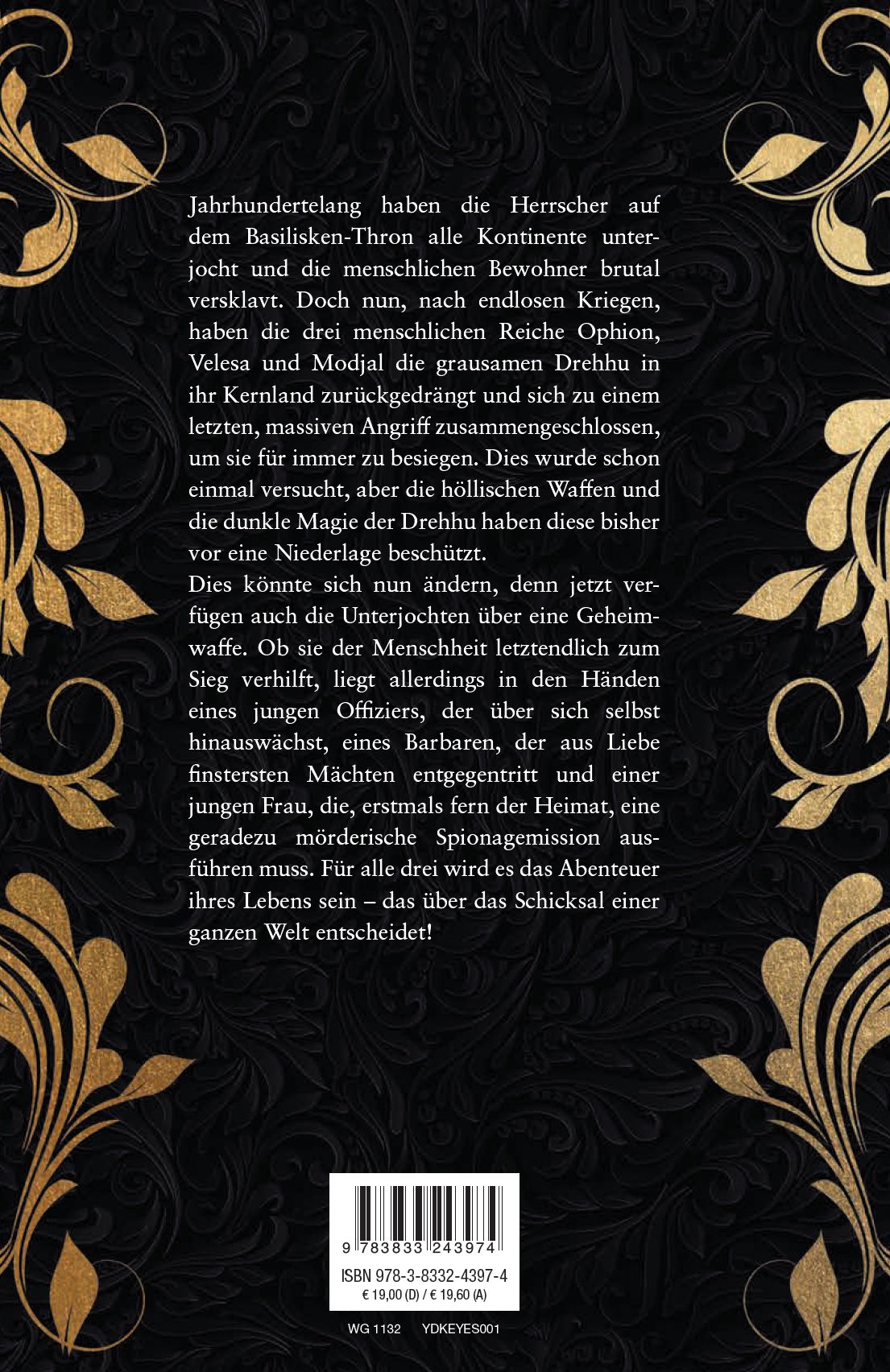 Jahrhundertelang haben die Herrscher auf dem Basilisken-Thron alle Kontinente unterjocht und die menschlichen Bewohner brutal versklavt. Doch nun, nach endlosen Kriegen, haben die drei menschlichen Reiche Ophion, Velesa und Modjal die grausamen Drehhu in ihr Kernland zurückgedrängt und sich zu einem letzten, massiven Angriff zusammengeschlossen, um sie für immer zu besiegen. Dies wurde schon einmal versucht, aber die höllischen Waffen und die dunkle Magie der Drehhu haben diese bisher vor eine Niederlage beschützt. Dies könnte sich nun ändern, denn jetzt verfügen auch die Unterjochten über eine Geheimwaffe. Ob sie der Menschheit letztendlich zum Sieg verhilft, liegt allerdings in den Händen eines jungen Offiziers, der über sich selbst hinauswächst, eines Barbaren, der aus Liebe finstersten Mächten entgegentritt und einer jungen Frau, die, erstmals fern der Heimat, eine geradezu mörderische Spionagemission ausführen muss. Für alle drei wird es das Abenteuer ihres Lebens sein - das über das Schicksal einer ganzen Welt entscheidet!