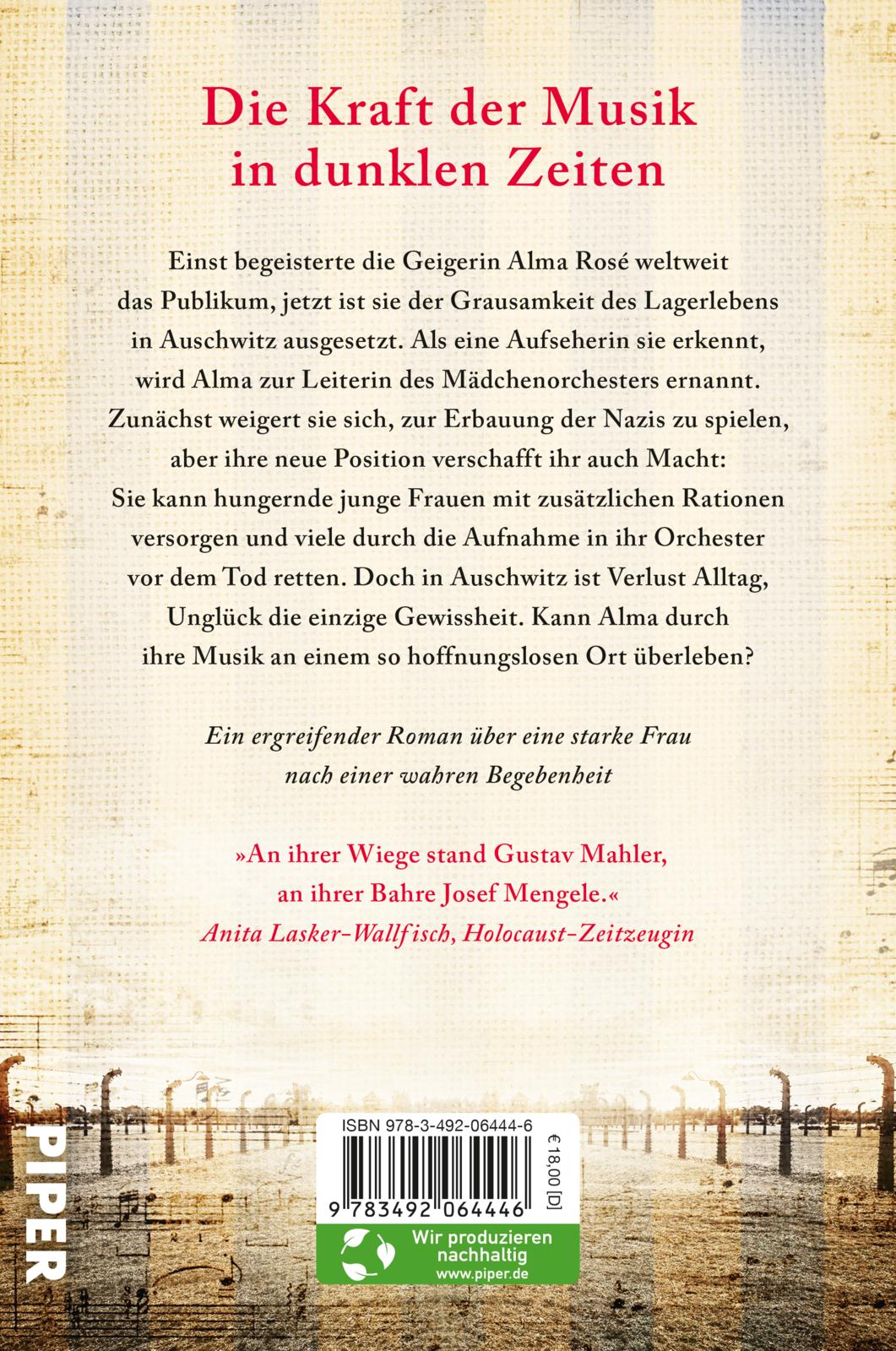 Einst begeisterte die Geigerin Alma Rosé weltweit das Publikum, nun empfängt sie die tragische Wirklichkeit von Auschwitz. Als eine Aufseherin sie erkennt, wird Alma zur Leiterin des Mädchenorchesters ernannt. Zunächst weigert sie sich, zur Erbauung der Nazis zu spielen, aber ihre neue Position verschafft ihr auch Macht: Sie kann hungernde Mädchen mit zusätzlichen Rationen versorgen und viele durch die Aufnahme in ihr Orchester vor dem Tod retten. Doch in Auschwitz ist die Luft von Verlust getränkt, Unglück ist die einzige Gewissheit. Kann Almas Musik an einem so hoffnungslosen Ort überleben?